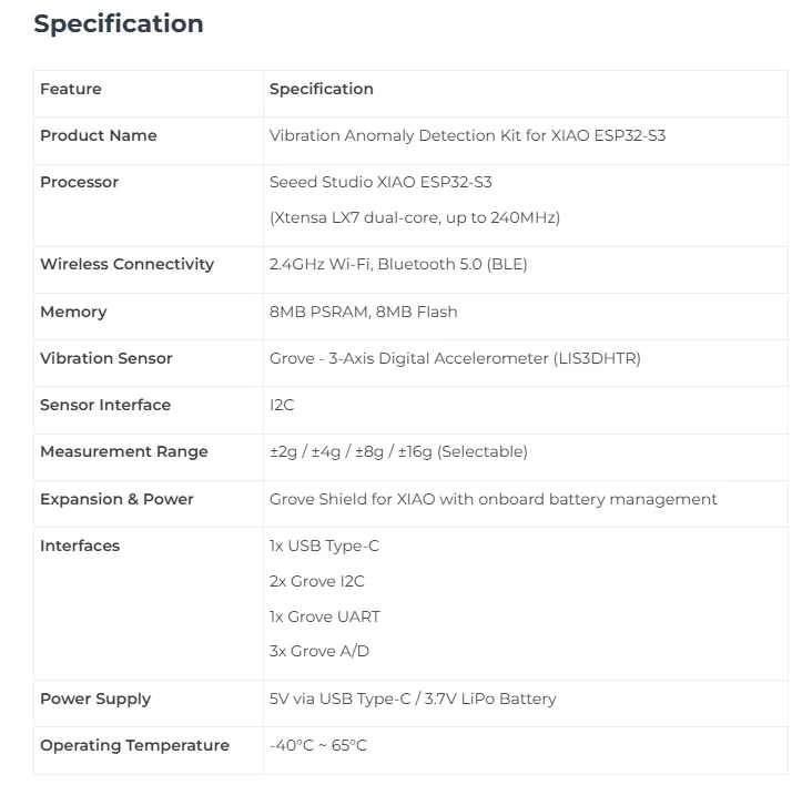 Configuración de hardware Plug-and-Play:Composto de módulos de ecosistema XIAO y Grove, fácilmente acoplables a máquinas, motores o componentes móviles para un seguimiento continuo de las vibraciones.