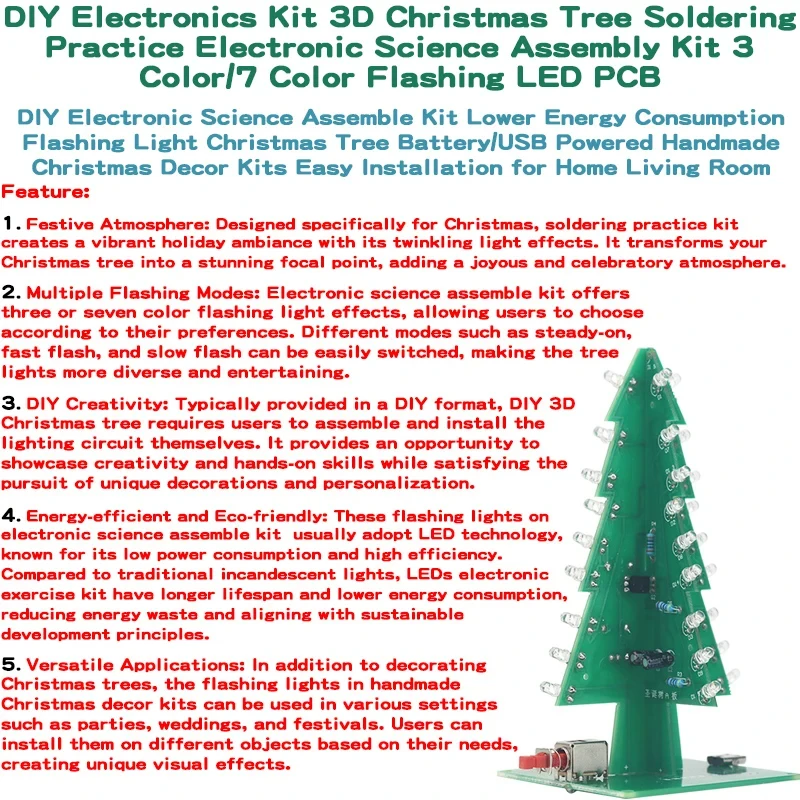 Kit de bricolaje LED para árbol de Navidad 3D creativo, Kit de circuito de Flash LED rojo/verde/amarillo, Suite electrónica divertida, PCB de 3 colores/7 colores