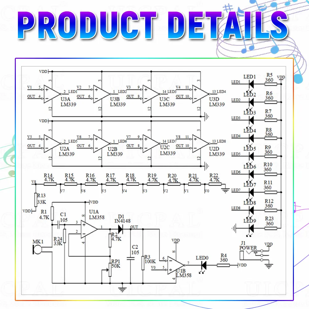 Kit electrónico de espectro de música LED con Control de sonido, columna de cristal, pantalla de Audio, Kit de práctica de soldadura PCB, LM339, LM358, DC5-12V