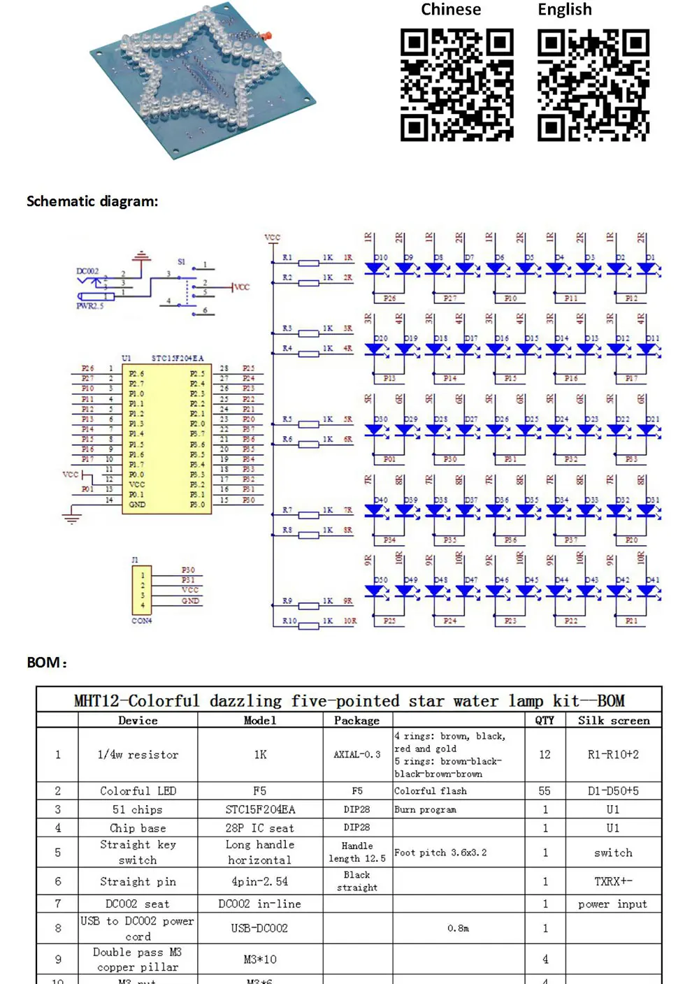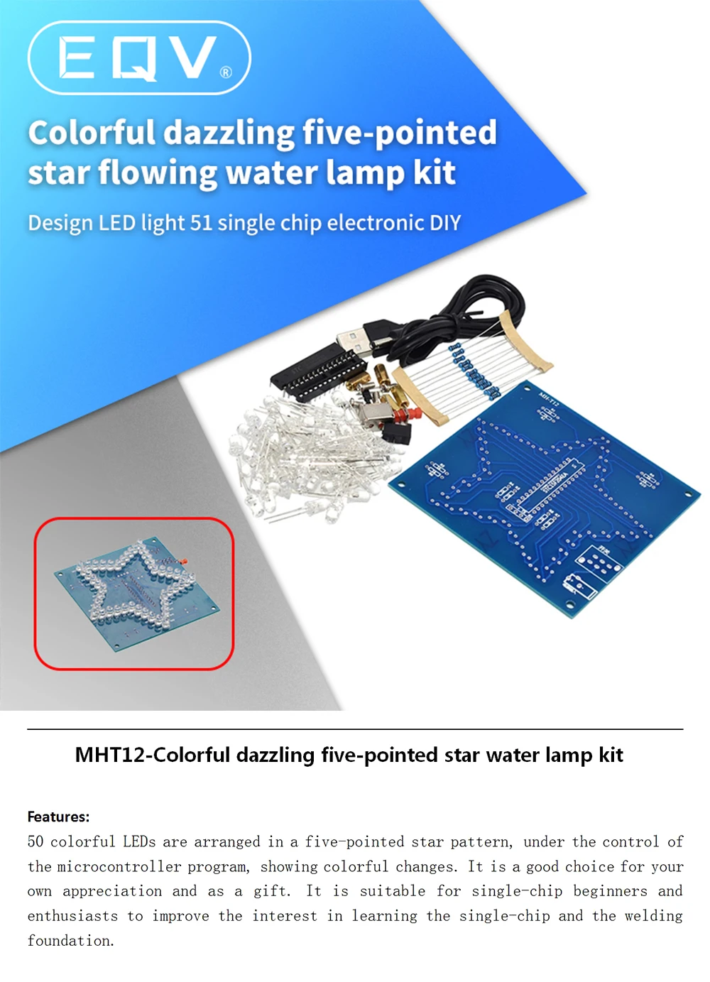 Kit electrónico de estrellas de cinco puntas, módulo LED RGB brillante, luz de agua, 51 microordenador de un solo Chip para Arduino, bricolaje