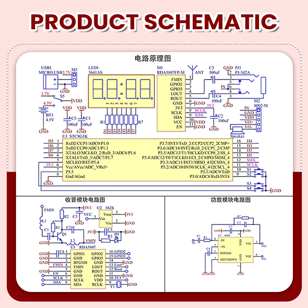 Kit electrónico de Radio FM DIY 50-108MHz IC ajustable RDA5807 con pantalla Digital LED Kit de soldadura DIY Altavoz de 3W Doble potencia