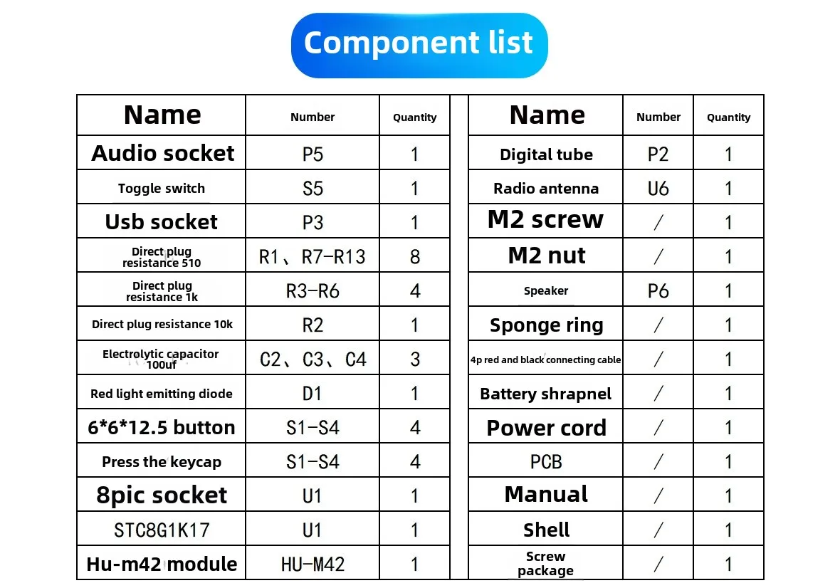 Nombre del kit: HU-017F Kit de producción de radio digital RDA5807