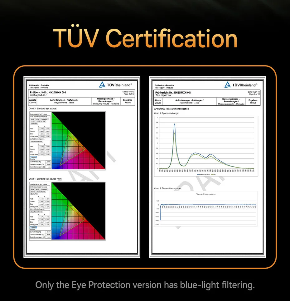 Certificado TUV, filtra eficazmente la luz azul visible intensa y dañina.