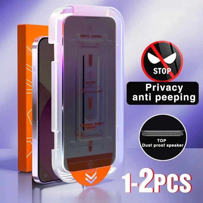 Comprar Kit de eliminación de polvo, vidrio templado antiespía de privacidad para iPhone 16 15 14 Plus 13 12 mini 11 Pro X XS Max, Protector de pantalla transparente, 2 uds.