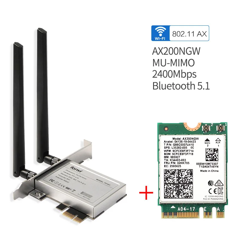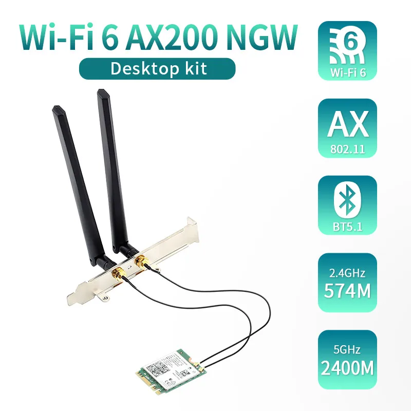 3000Mbps 802.11ax Wi-Fi 6 Kit de escritorio Intel AX200 Bluetooth 5,1 Wifi Tarjeta de antena 2,4G/5Ghz MU-MIMO AX200NGW adaptador Wifi para PC