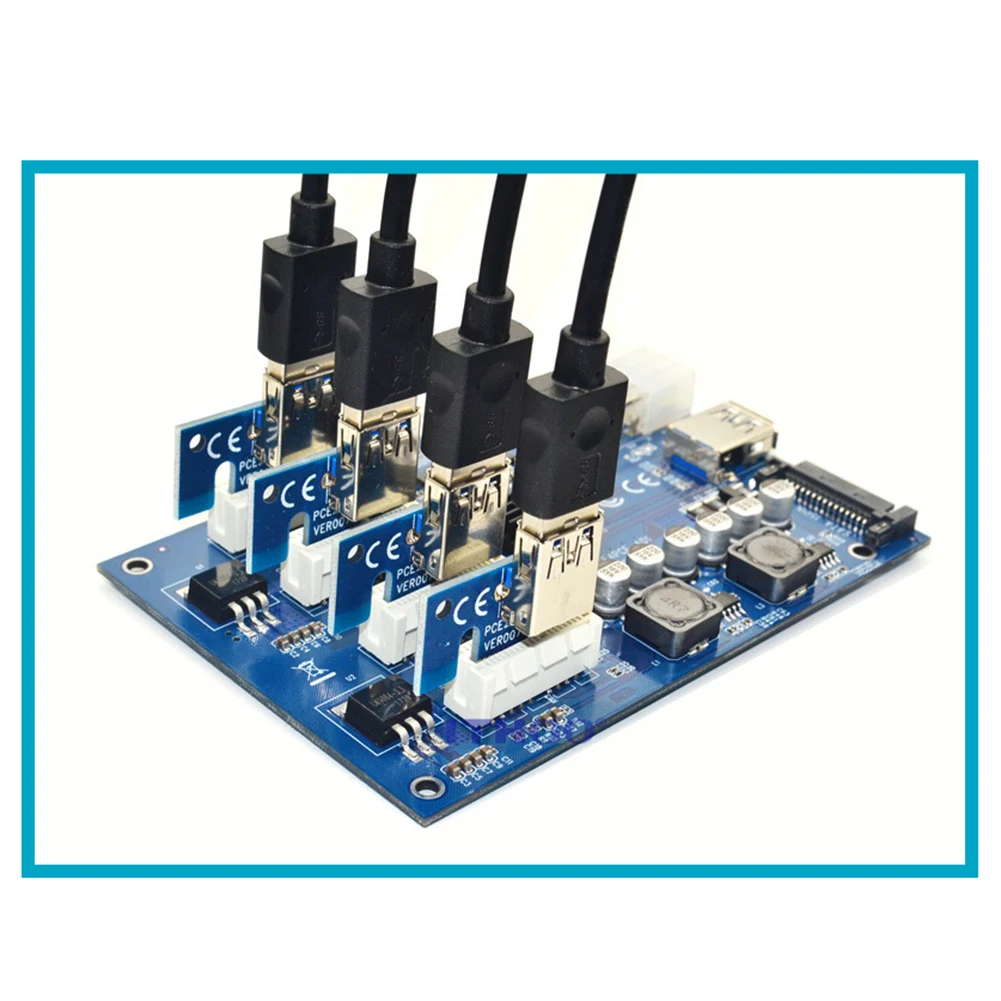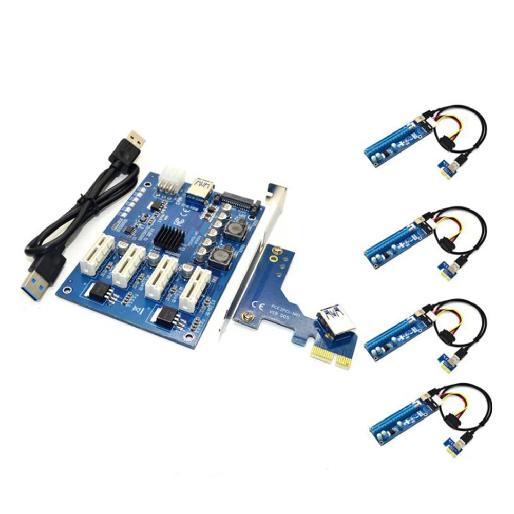 Comprar Kit de expansión PCI-E X1To4PCI-E X16, puerto 1To4, multiplicador de interruptor PCI Express, HUB, tarjeta elevadora USB de 4 pines para minería BTC