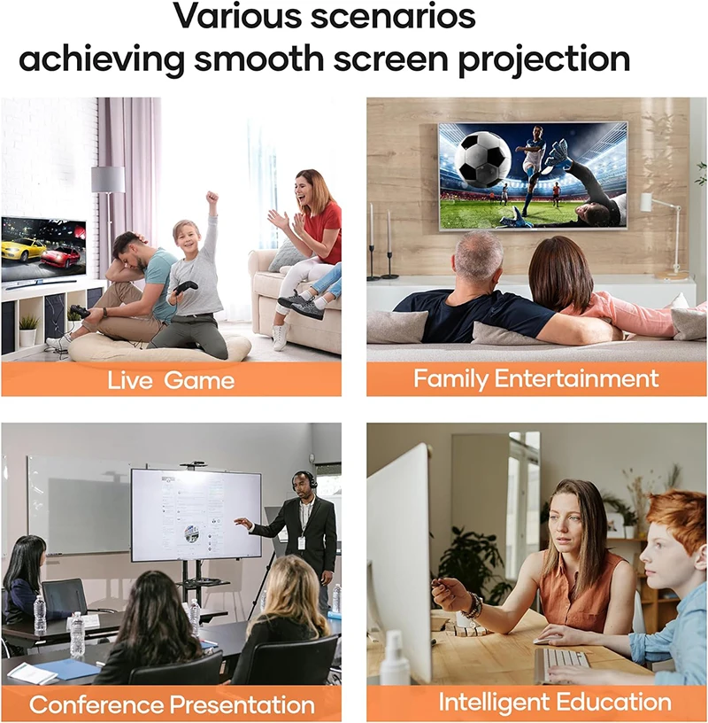 Admite transmisión inalámbrica Full HD 1080P. No es necesario instalar controladores o aplicaciones, no necesita WiFi adicional,