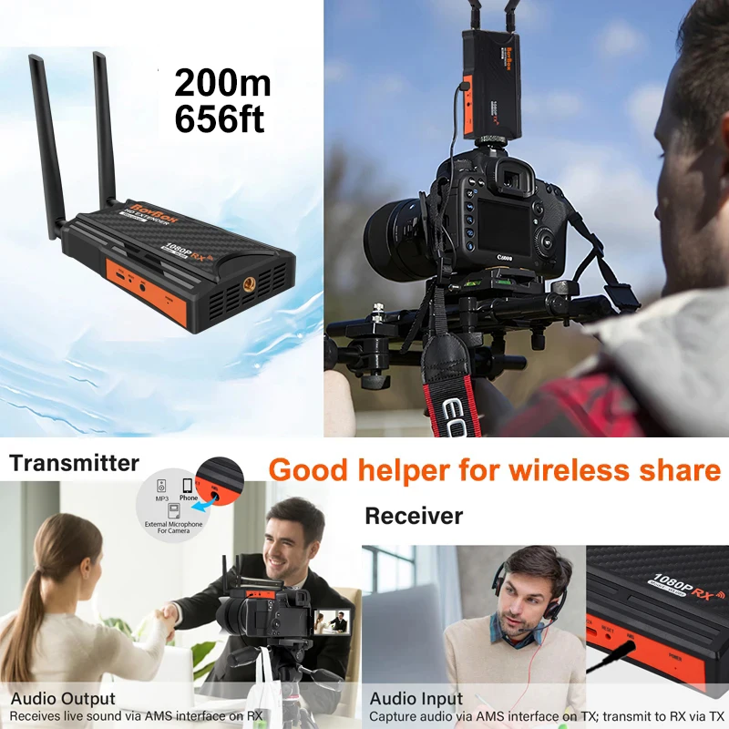 Comprar Kit extensor inalámbrico de 200M, transmisor y receptor de vídeo HDMI, adaptador de pantalla inalámbrico para cámara, DVD, portátil, PC a proyector de TV