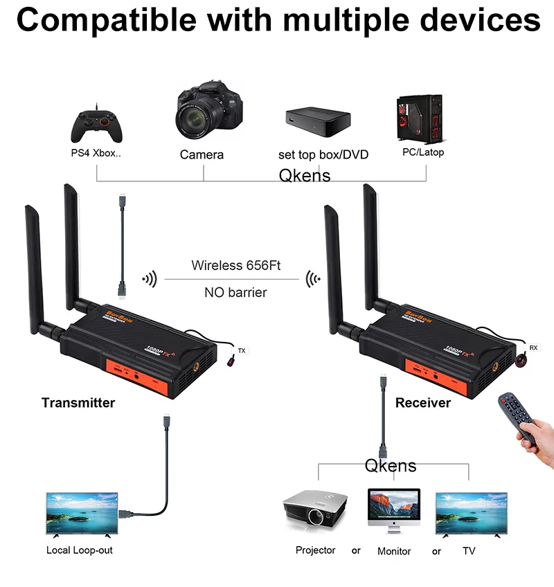 2. 200m de larga distancia, puede pasar a través de una pared (por favor consúltenos antes de comprar) y puede IR Remote