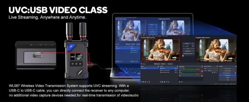 El sistema de transmisión de vídeo inalámbrico WL087 admite transmisión UVC.