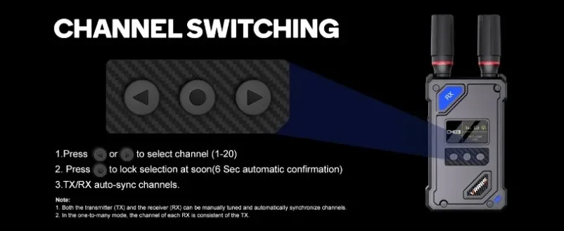-Admite 1 transmisor a 5 receptores.El producto se actualiza recientemente, rompiendo la regla anterior de 1TX a 4RX.Puede utilizar hasta 1 transmisor a 5 receptores según sea necesario.
