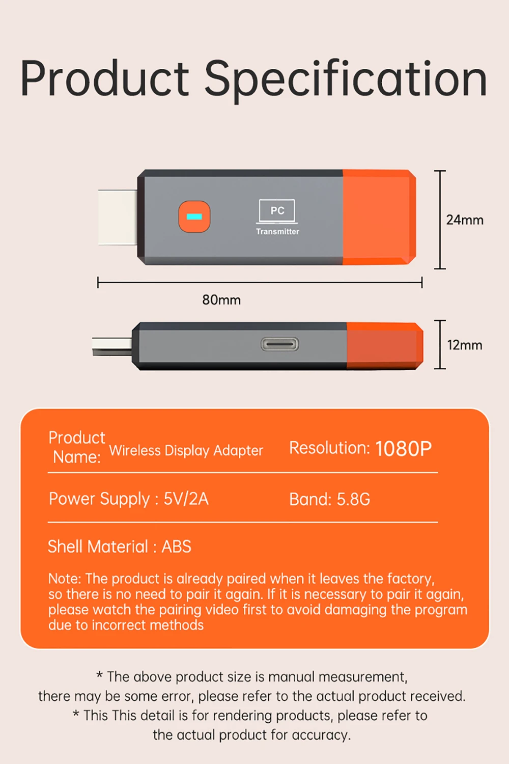 Nombre del producto: Adaptador de pantalla inalámbrico