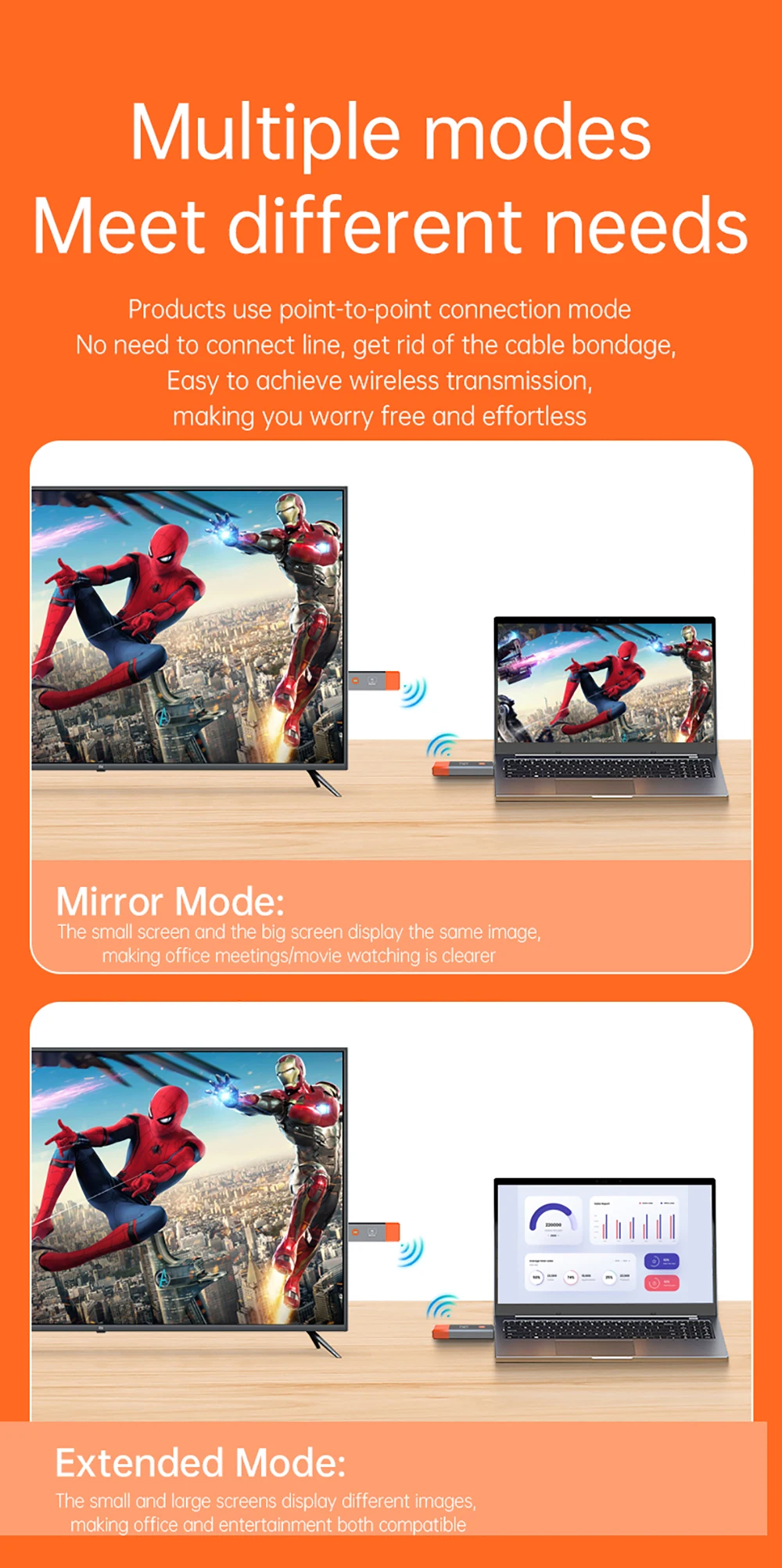 2.Transmisión de audio y vídeo HDMI a través del protocolo de transmisión inalámbrica incorporado, sin necesidad de wifi ni de Internet.