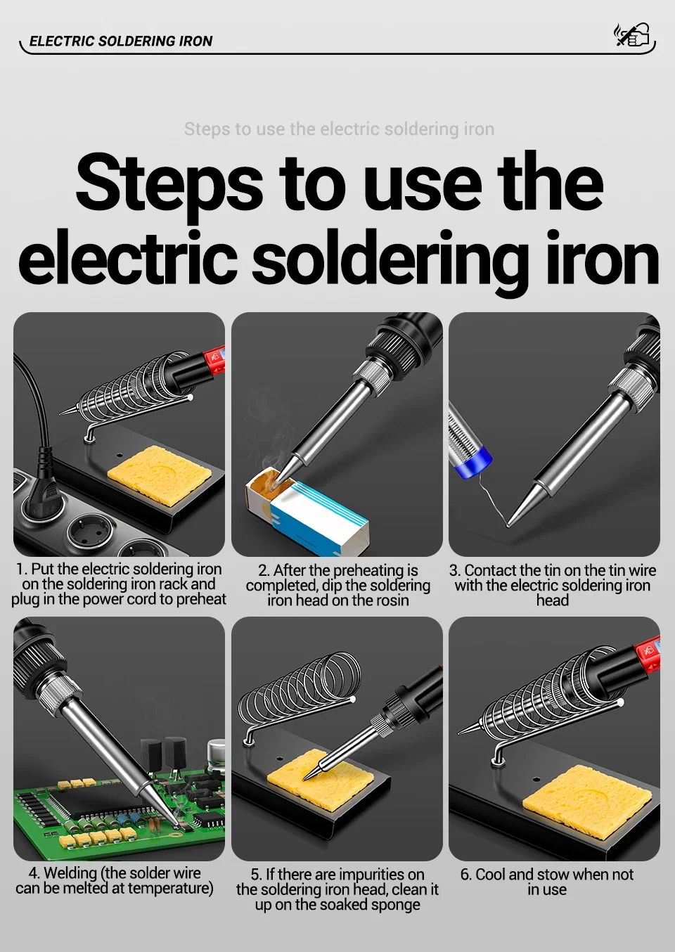 Spécifications : Modèle : SL106 Nom : fer à souder électrique. Puissance nominale : 60 W Température : 180℃~520℃ Poids du produit : 78g Longueur du produit: 121 cm/47,6 pouces Écran : affichage numérique rétroéclairé bleu Noyau chauffant : noyau chauffant en céramique Matériau : plastique, silicone, acier inoxydable. Prise de courant : prise standard européenne