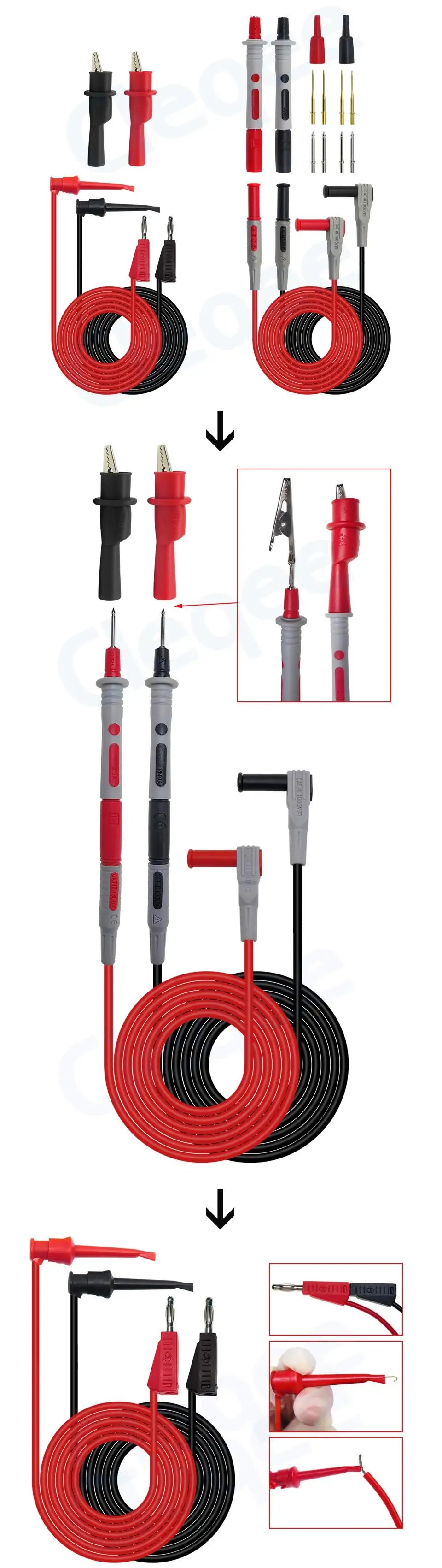 Spécification :Leads de test : L'ensemble de fils de test comprend une paire de sondes de poignée confort rouges et noires avec flexibles Cordons de test à angle droit isolés en PVC.Avec des sondes de poignée confort distinctives, elles sont résistant à la chaleur et au froid avec des capacités de sécurité jusqu'à CAT III 1000 V. Sondes de test remplaçables : Conçu pour améliorer la stabilité des mains glissantes.Les surfaces surmoulées en caoutchouc donnent au utilisez une prise confortable et fiable sur l'accessoire afin qu'il puisse se concentrer sur la création d'un mesure précise. Fiche banane vers fils de test Mingrabber Fabriqués avec une isolation en PVC, les cordons de test sont durables, flexibles et faciles à manipuler lorsque équipement de test. Pince crocodile : Saisissez le conducteur pour fournir une connexion mains libres plus sûre que les pointes de sonde des connexions qui pourraient devoir être laissées en place. Paramètre : Fils : CAT III 1000 V, 10 A Sondes de test : CAT III 1000 V/CAT IV 600 V, 10 A Pinces crocodiles : CAT III 1000V, 10A Mini-grabbers : 150V, 10A