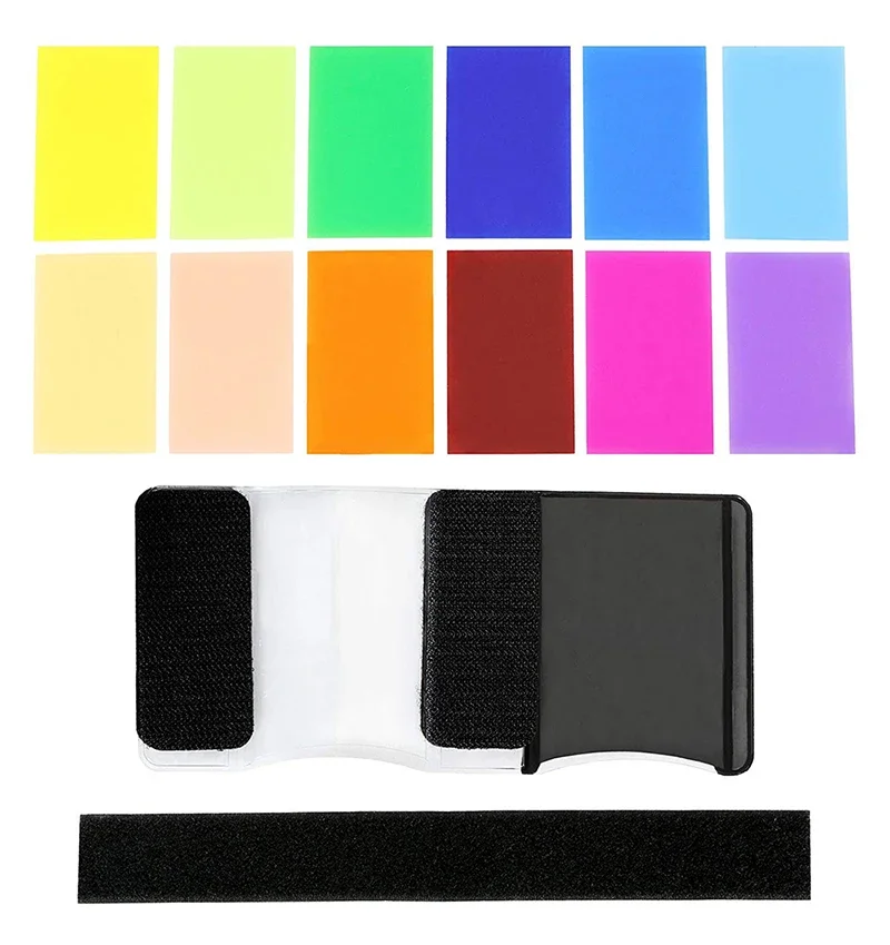 Kit de filtro de iluminación de equilibrio de Color transparente para Canon Nikon Pentax Yongnuo Godox Sony Sigma Nissin, geles difusos universales de 12 colores para cámara