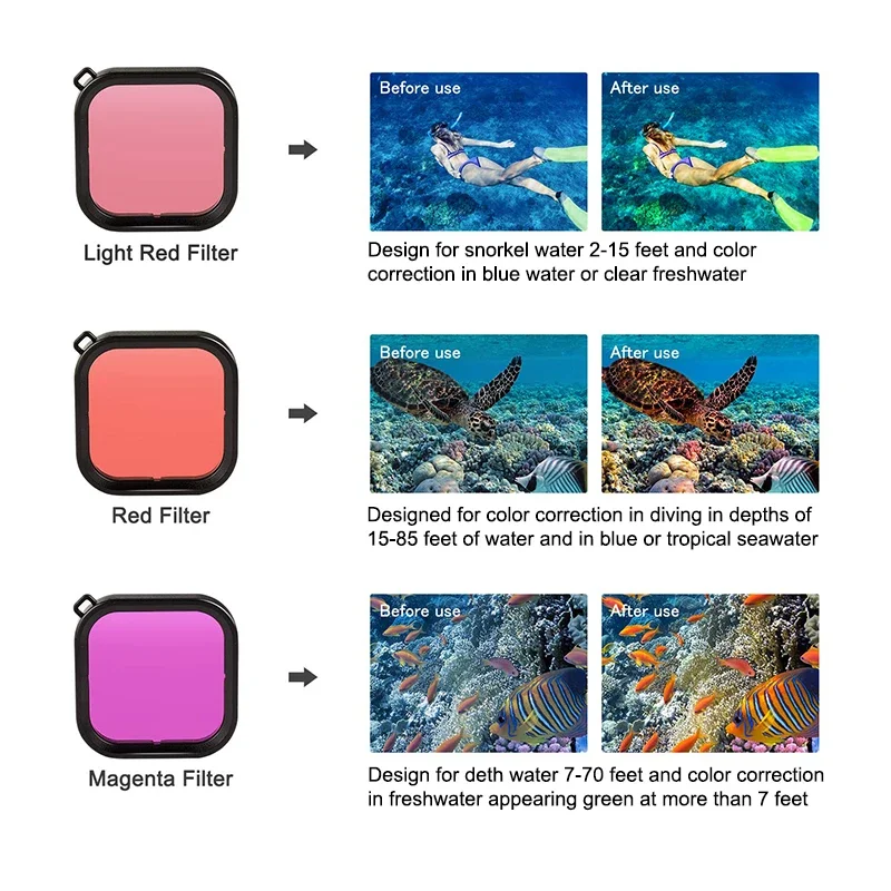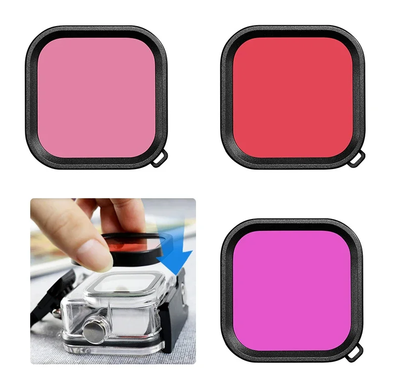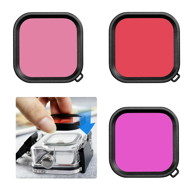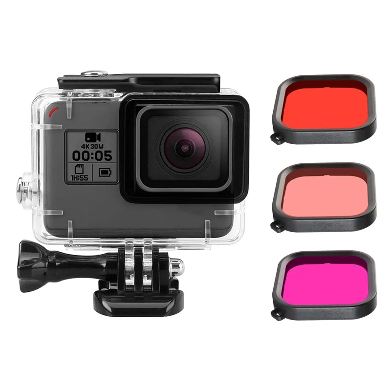 Paquete de 3 filtros, lente magenta roja, filtro de Color rojo para Go Pro Hero 6 5 7, negro, 45m, carcasa impermeable, accesorios de carcasa