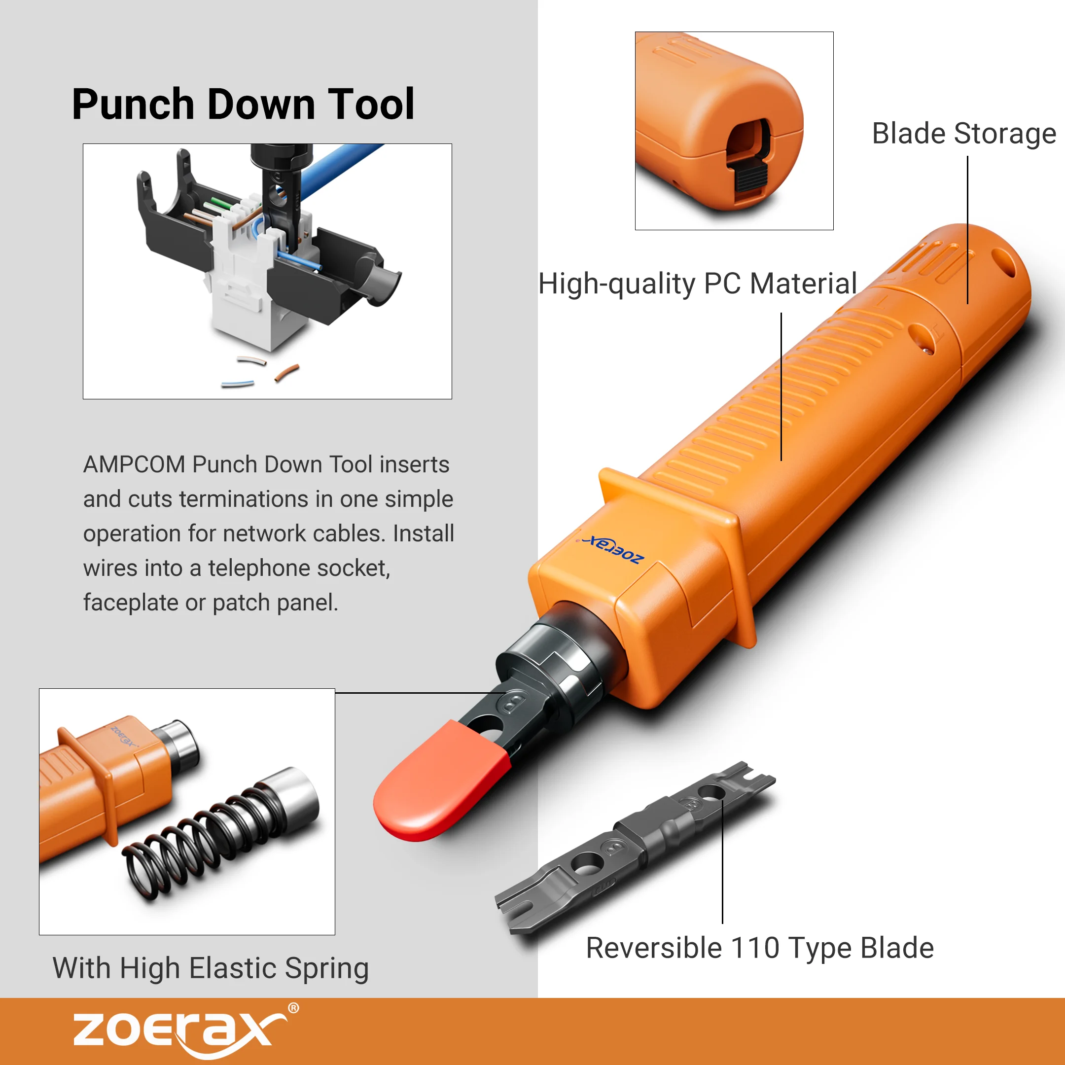 El kit también incluye 10 conectores pasantes Cat6 con 10 botas RJ45, 1 mini cortadores y 2 cuchillas de repuesto. Todas las herramientas se mantienen ordenadas y organizadas con almohadillas de plástico de burbujas en un estuche de aspecto profesional.