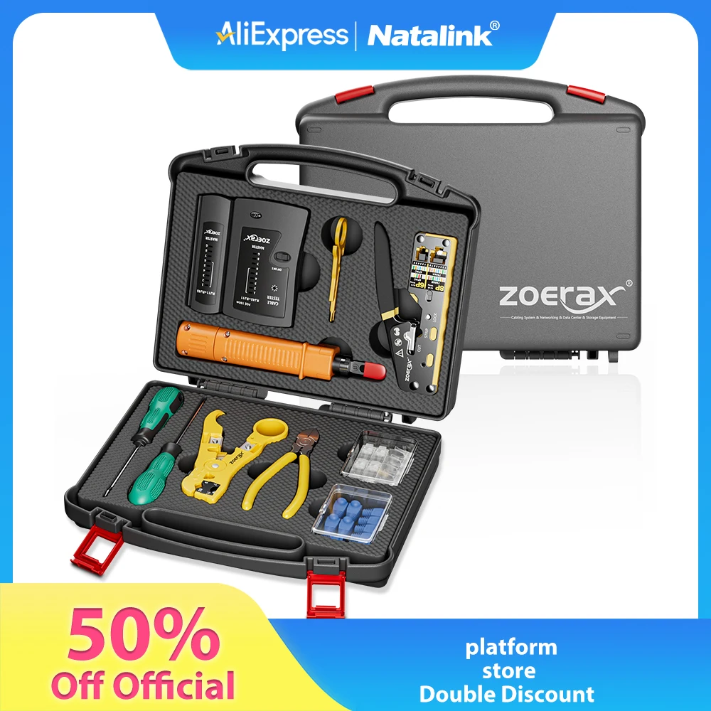 Equipado con pelacables coaxiales, pelacables redondos, cortadores y pelacables planos; los cortadores de cables pueden cortar fácilmente el cable Ethernet.