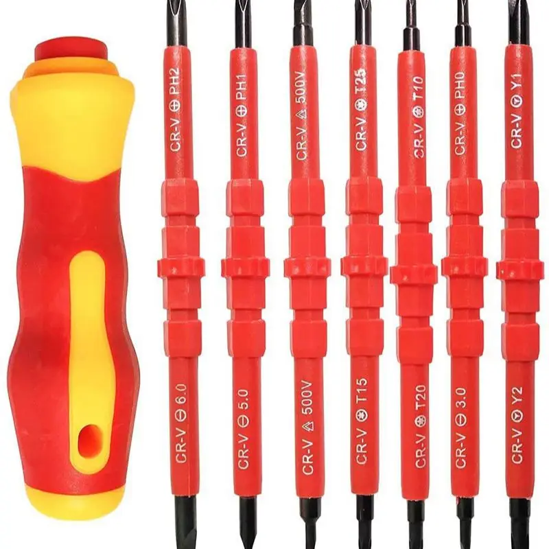 Comprar Kit de herramientas de destornillador con mango magnético de precisión 7 en 1, 500V, caja para teléfono móvil, reparación de ordenador portátil, luz lED de TV