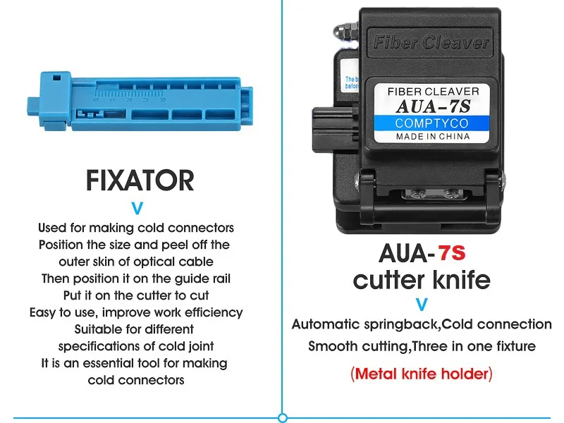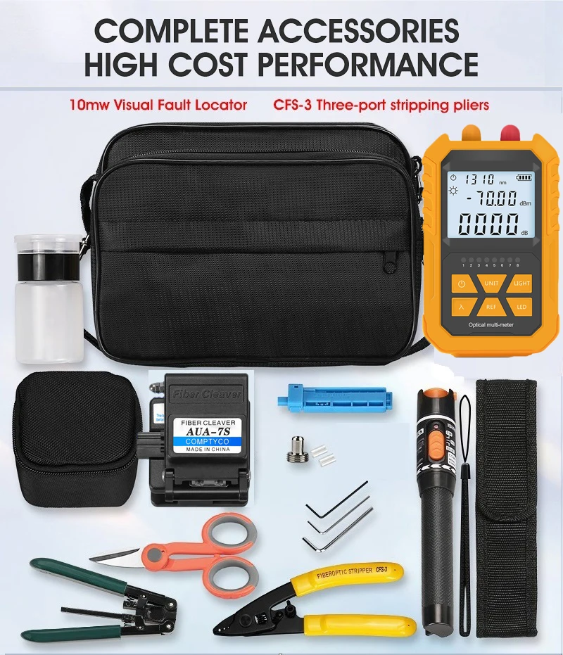 Comprar Kit de herramientas de fibra óptica AUA-7S cuchilla de fibra-70 ~ + 6dBm/-50 ~ + 26dBm 3 en 1 Mini medidor de potencia óptica con localizador Visual de fallos de 10Mw