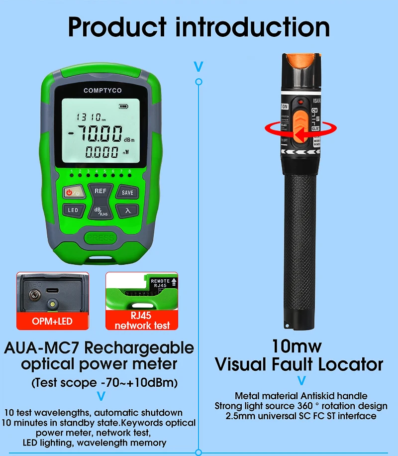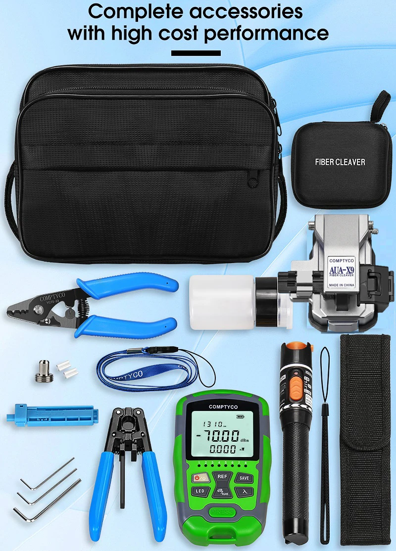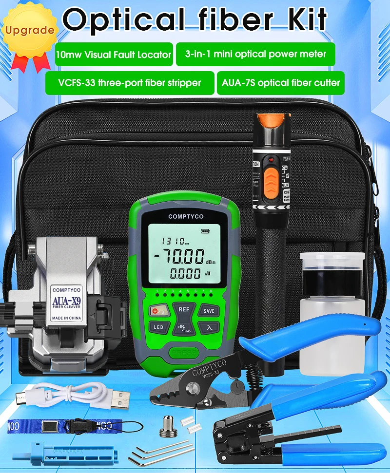 Comprar Kit de herramientas de fibra óptica con cuchilla de fibra AUA-X9, minimedidor de potencia óptica, localizador Visual de fallos de 10Mw, 70 + 10dBm/-50 + 26dBm, 3 en 1