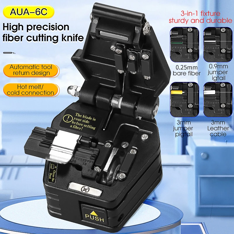 Kit de herramientas de fibra óptica FTTH con cuchilla de fibra de AUA-6C CFS-3 alicates pelacables de fibra de tres puertos pelacables de cuero de fibra óptica