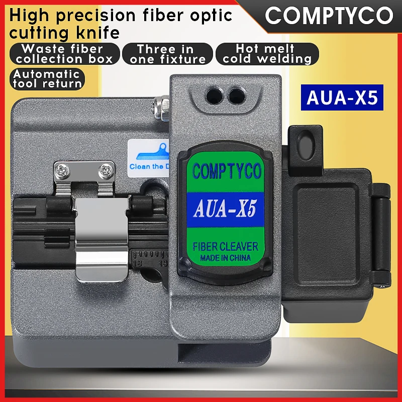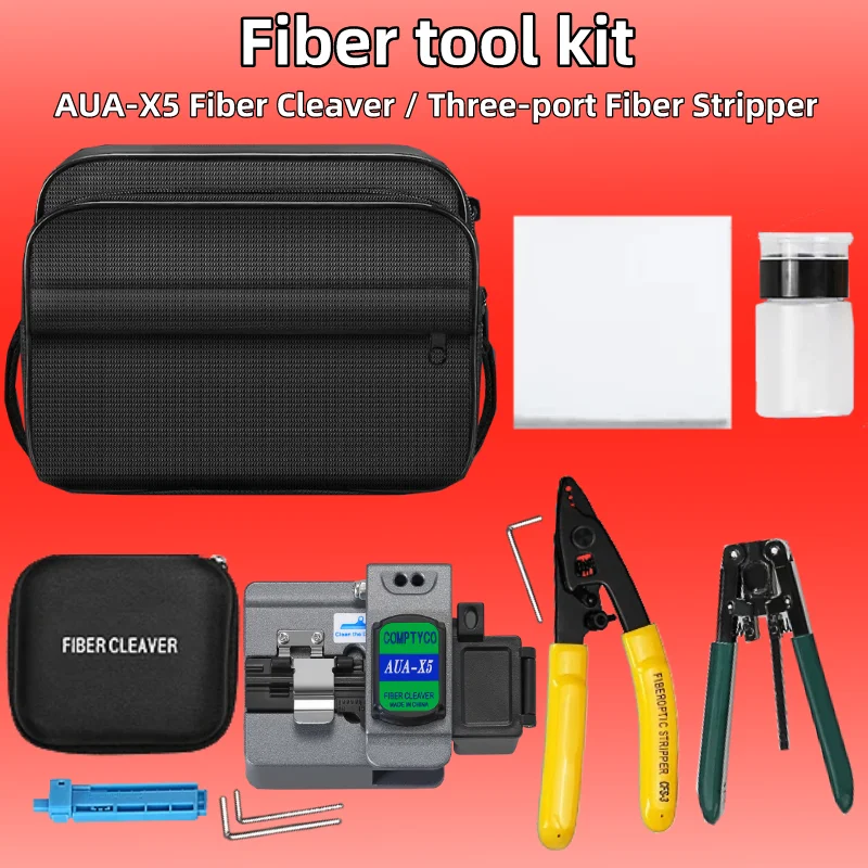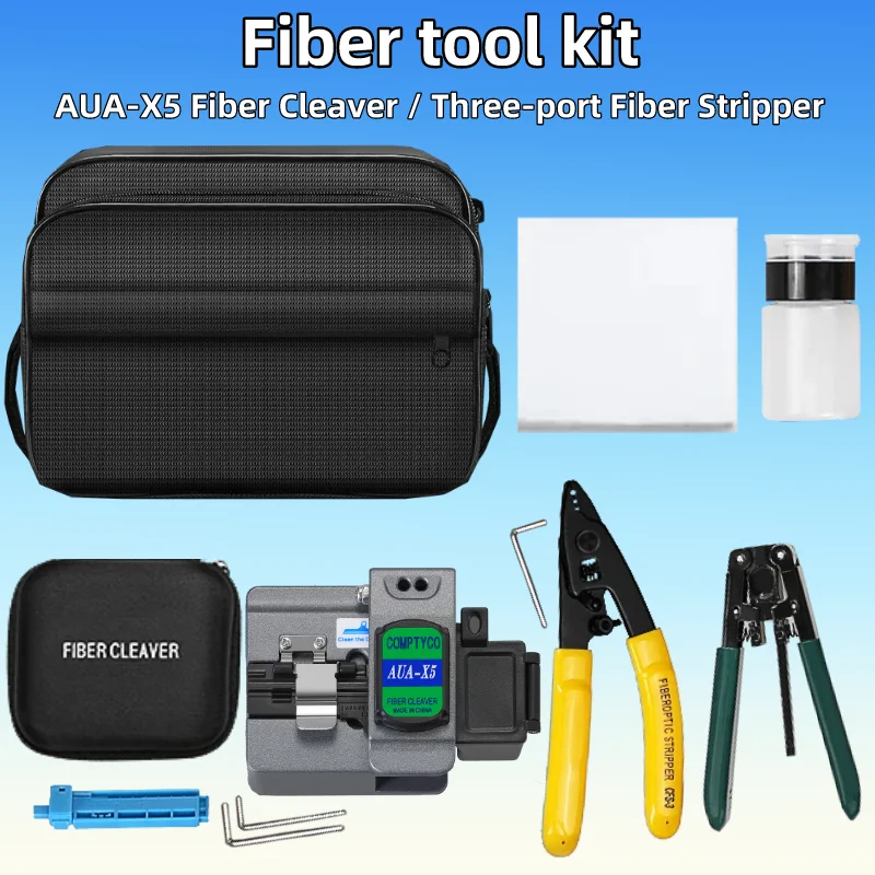 Kit de herramientas de fibra óptica FTTH con cuchilla de fibra de AUA-X5, pelador de cables de cuero y fibra óptica, CFS-3, alicates pelacables de fibra de tres puertos
