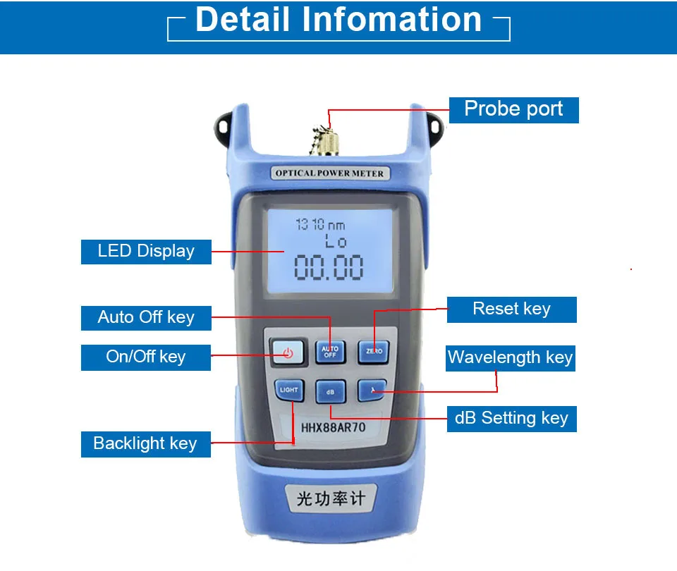 Medidor de potencia de fibra óptica -70 dBm +10 dBm y 5 km 1 mW localizador Visual de fallos probador de cables de fibra óptica