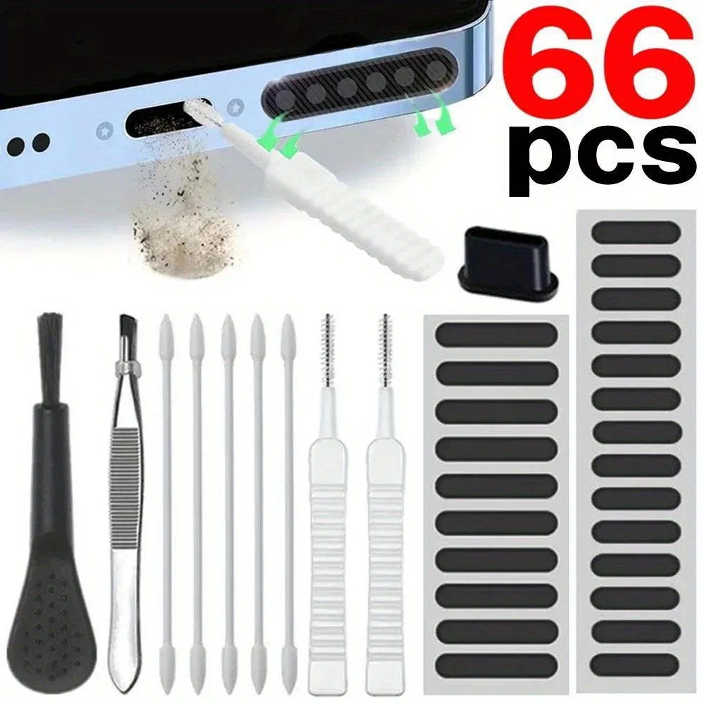 Juego de herramientas de limpieza de altavoces de teléfono móvil de 66 piezas: este juego cuenta con 66 herramientas diversas diseñadas para ayudar a limpiar los altavoces y el puerto de carga de su teléfono móvil sin esfuerzo. Juego de herramientas de limpieza de polvo: el juego contiene herramientas que ayudan a eliminar el polvo de los parlantes y el puerto de carga de su teléfono móvil, promoviendo una mejor calidad de sonido y extendiendo la vida útil del dispositivo. Nota: Para los sistemas iPhone 16/15, se requiere un puerto tipo C.