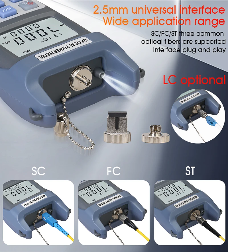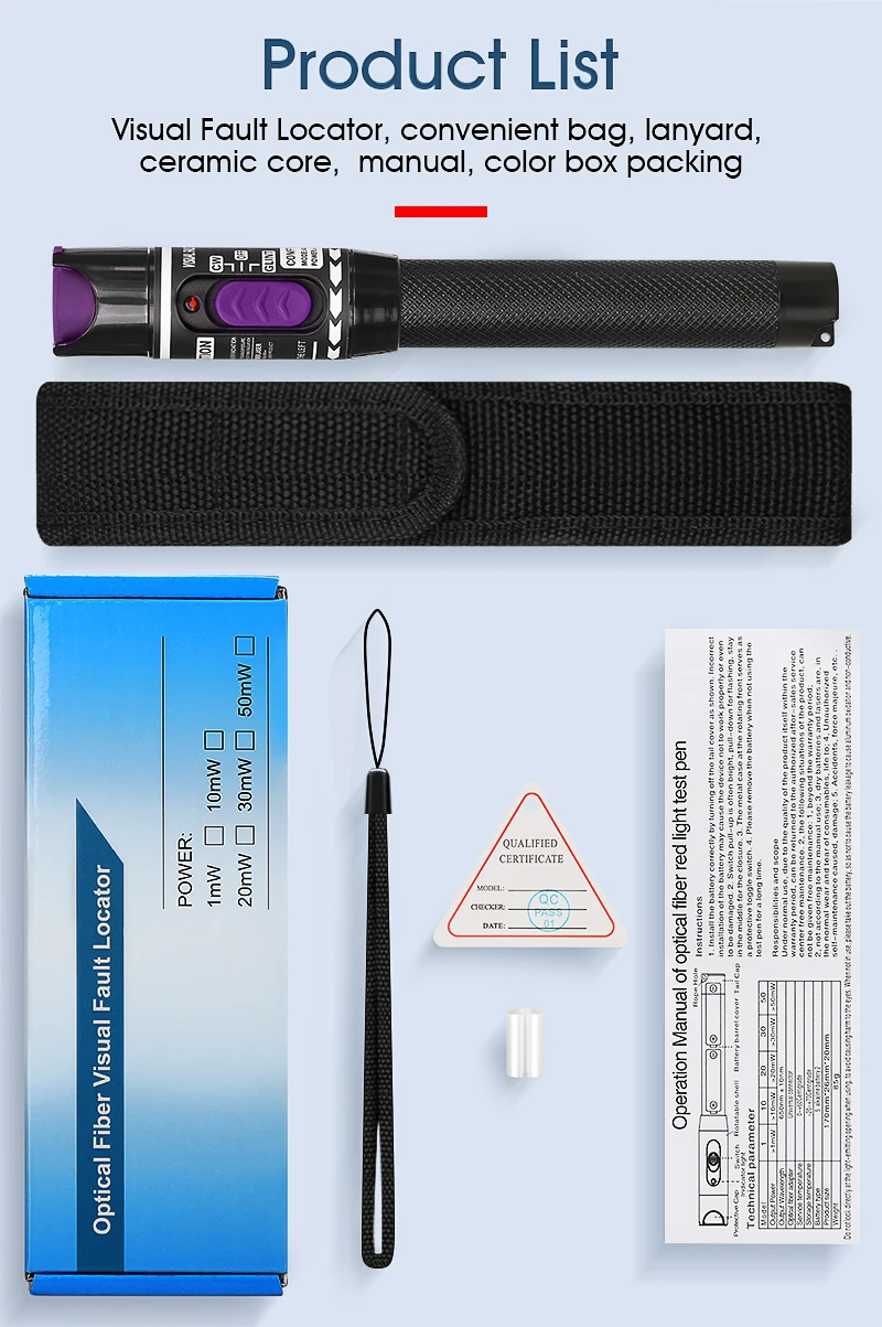 Comprar Kit de herramientas de probador de Cable de fibra óptica FTTH (opcional), medidor de potencia óptica (OPM -70 ~ + 10dBm) y Localizador Visual de Fallas (30/1/10/20/50mw VFL)
