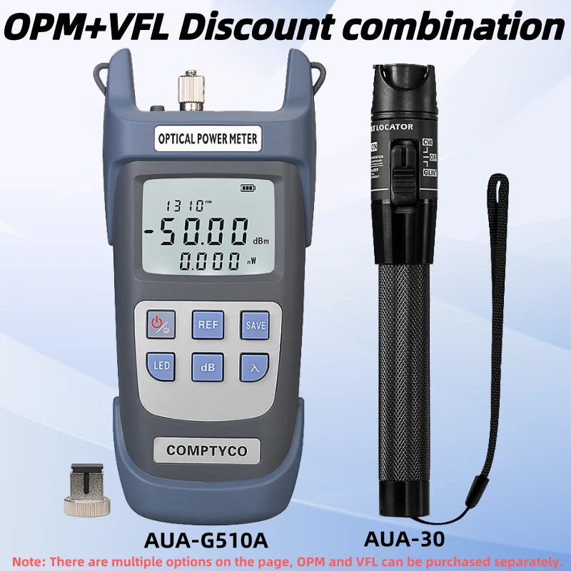 Kit de herramientas de probador de Cable de fibra óptica FTTH (opcional) (OPM -50 ~ + 26dBm) medidor de potencia óptica y (30/1/10/20/50mw VFL) Localizador Visual de fallas