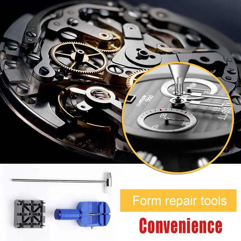 Un simple kit de herramientas de reparación de relojes para uso doméstico.