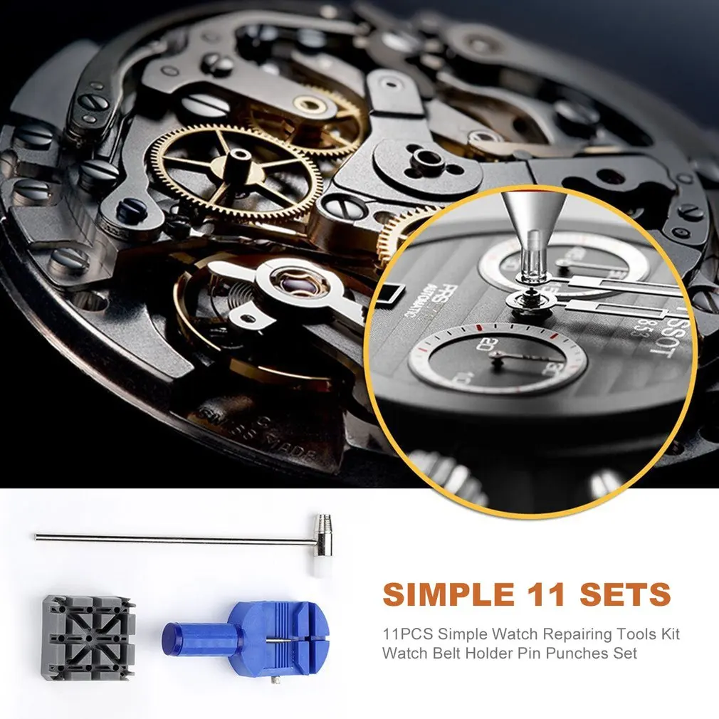 Un simple kit de herramientas de reparación de relojes para uso doméstico.