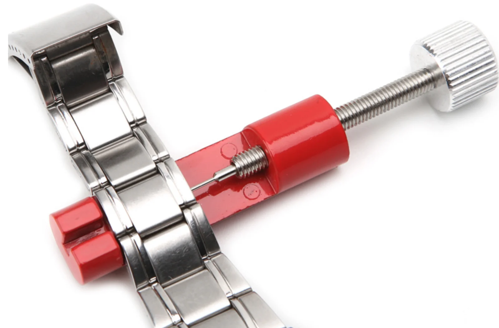 Quickly and easily enables the removal and insertion of pins in a link pin watch band