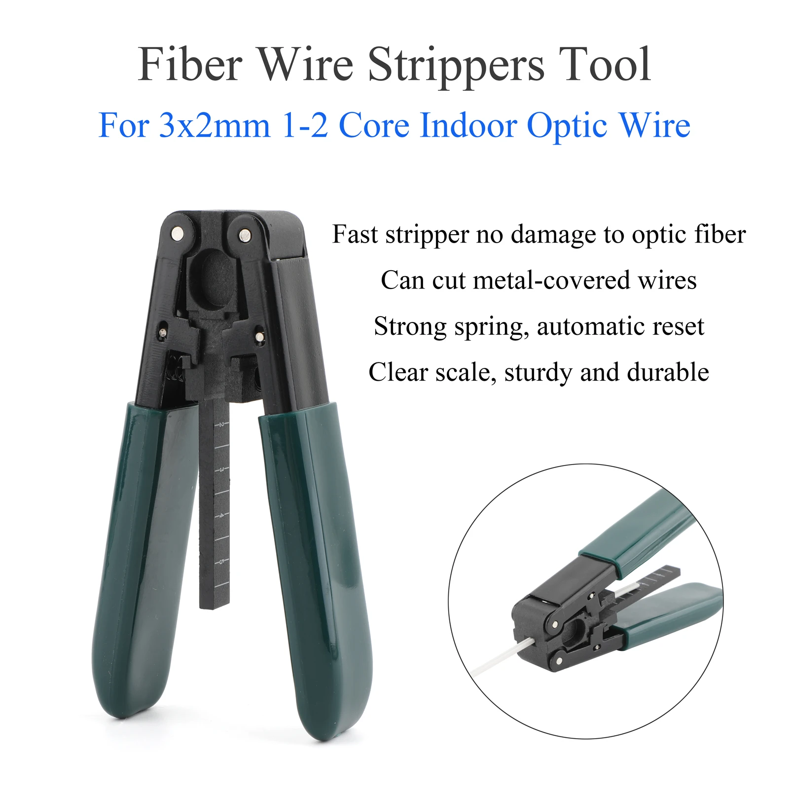 Fibra aplicable: 3*2 mm, fibra interior de 1 ~ 2 núcleosCaracterísticas: Con graduaciones3.【Pelacables de fibra óptica de 3 orificios】