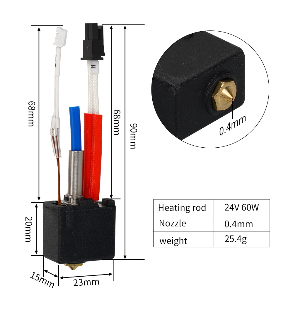 Es exactamente el mismo hotend que el original. Todos los componentes están incluidos en la entrega y puedes cambiarlo fácilmente, conectar y usar.