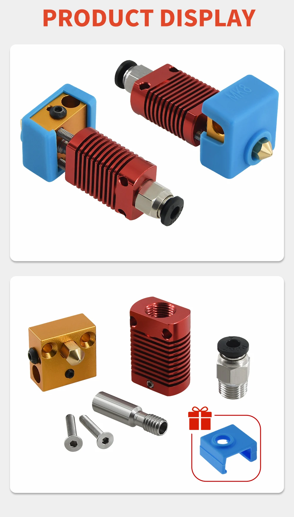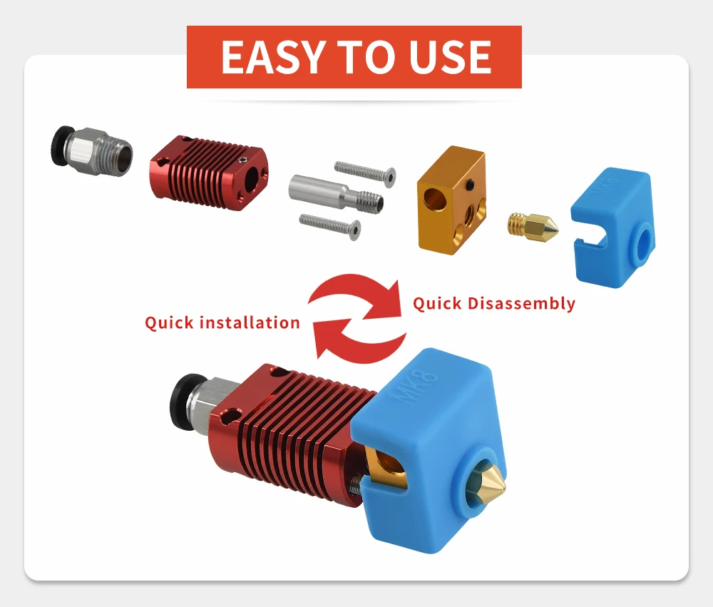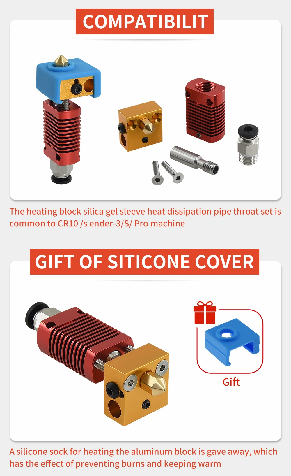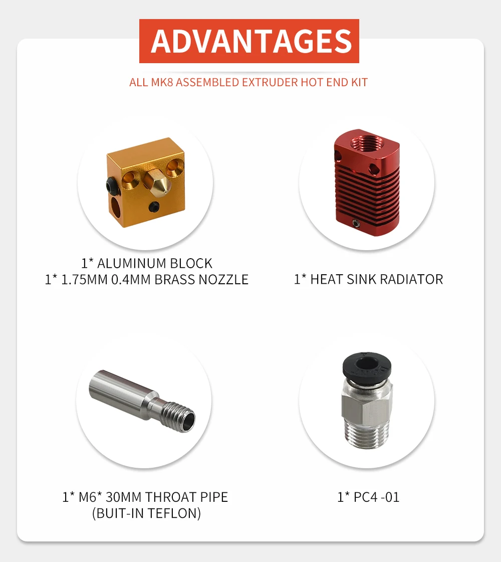 Kit Hotend extrusor ensamblado MK8 para cabezal de impresión Ender 3 CR-10 MK8, boquilla de latón, bloque calefactor de aluminio, piezas de impresora 3D