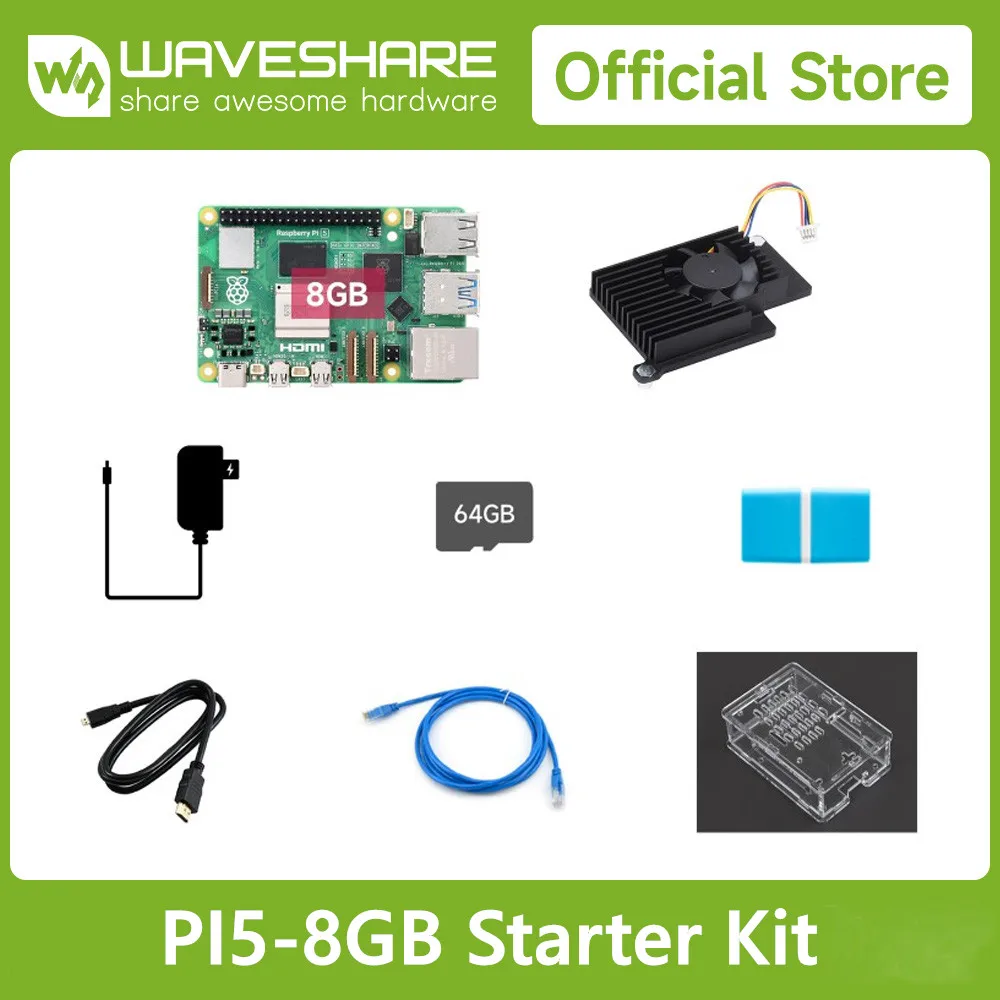 Wiki:Comprar Kit de iniciación Raspberry Pi 5, opciones para 2GB/4GB/8GB de RAM, procesador BCM2712, quad-core de 2,4 GHz, funda de disipador de calor de accesorios para Waveshare