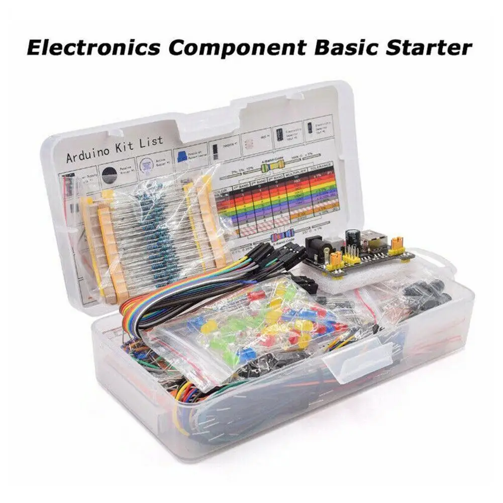 Comprar Kit de inicio de proyecto DIY para Arduino R3, Kit de componentes electrónicos, juego de componentes electrónicos con caja 830, placa de pruebas de puntos de amarre