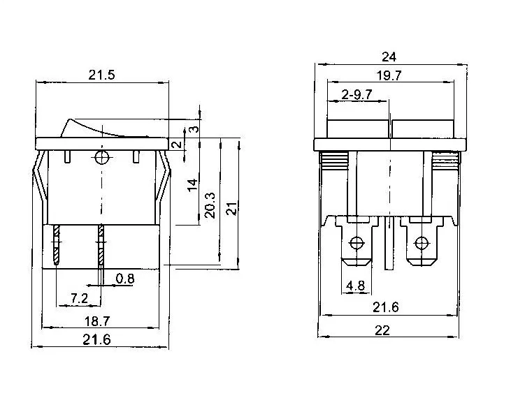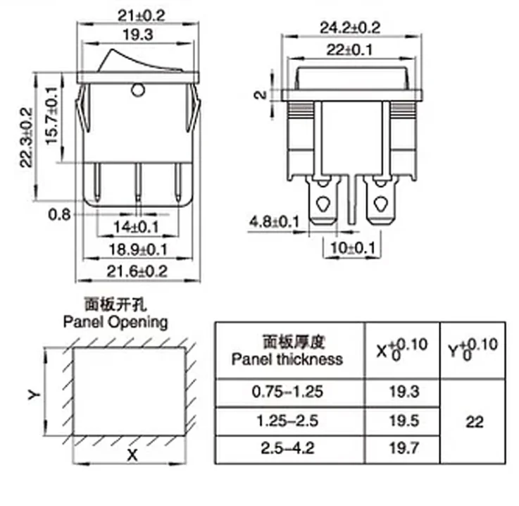 KCD5 21x24mm 21*24mm Kit de interruptores basculantes 4 pines 6 pines 2 posiciones 3 posiciones 15A/250VAC ON-OFF
