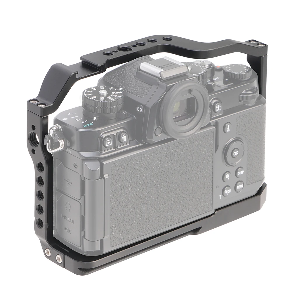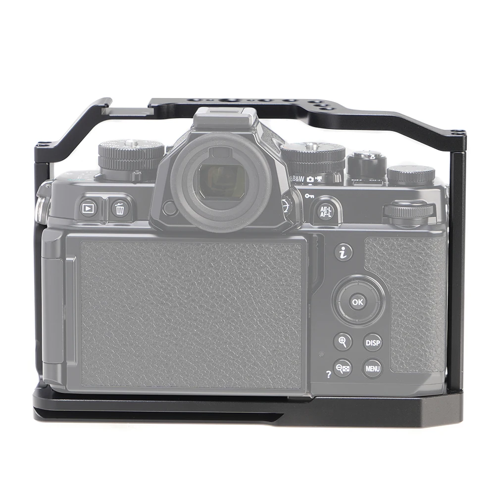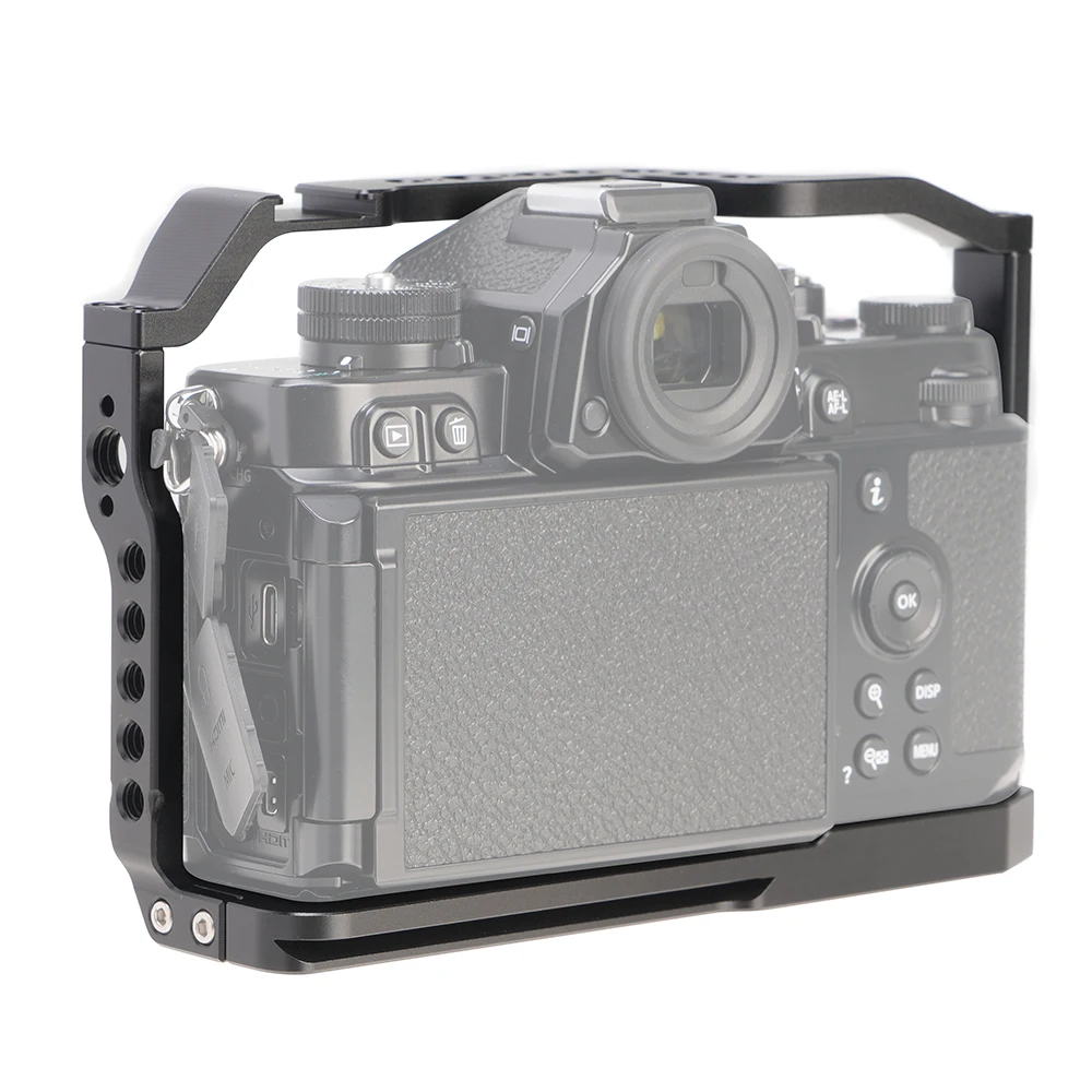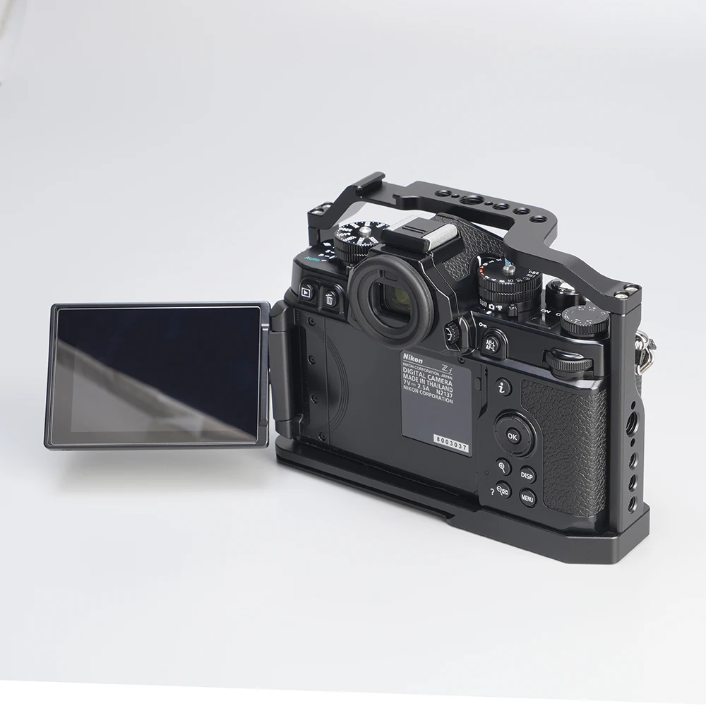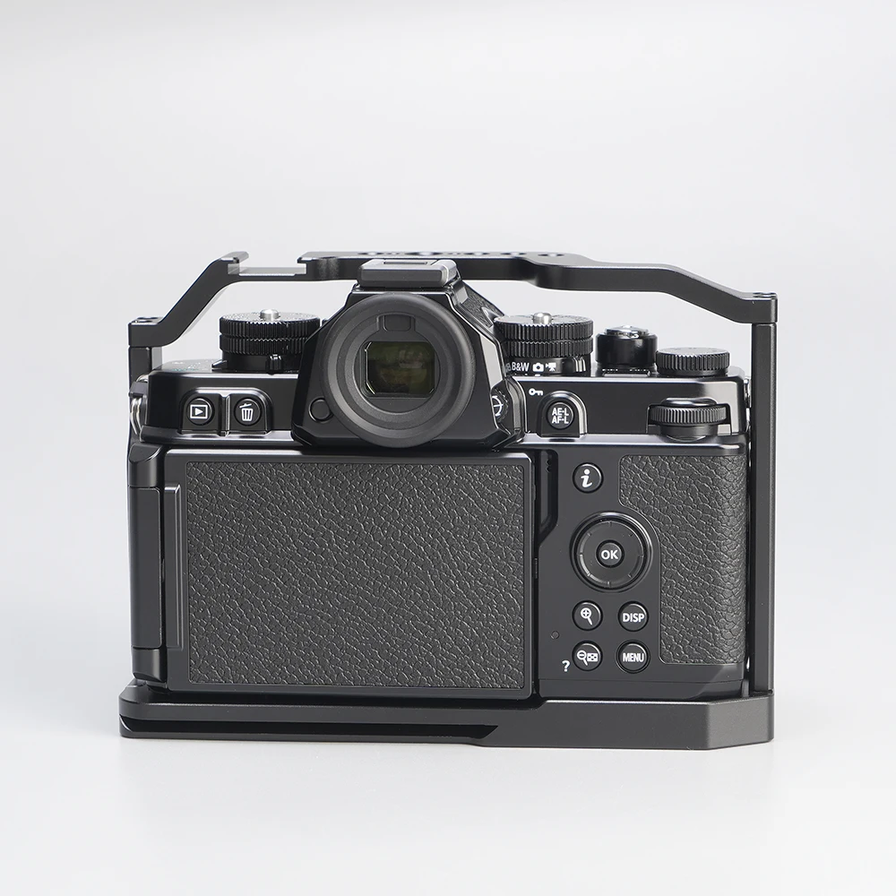 La jaula de aluminio para cámara está diseñada específicamente para Nikon ZF Cámara.Es una jaula completa que es liviana y se adapta perfectamente a la cámara.Está equipado con múltiples orificios roscados de 1/4" -20 y 3/8" -16, orificio de ubicación ARRl y zapata fría para montaje de accesorios.