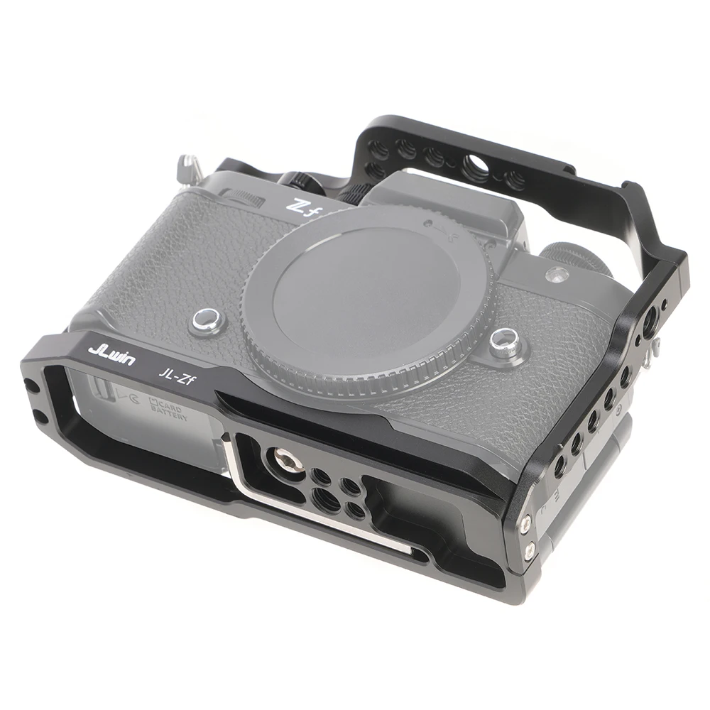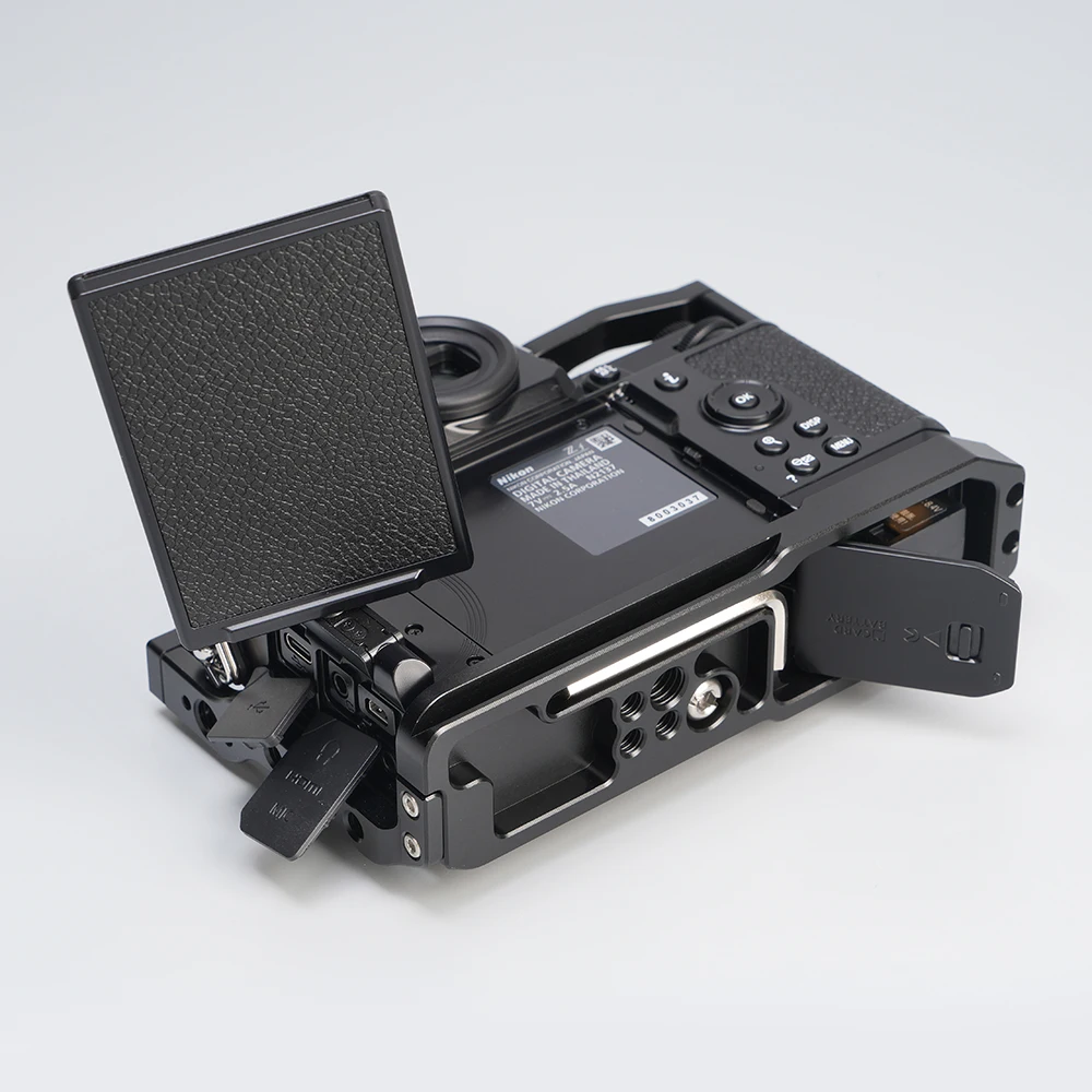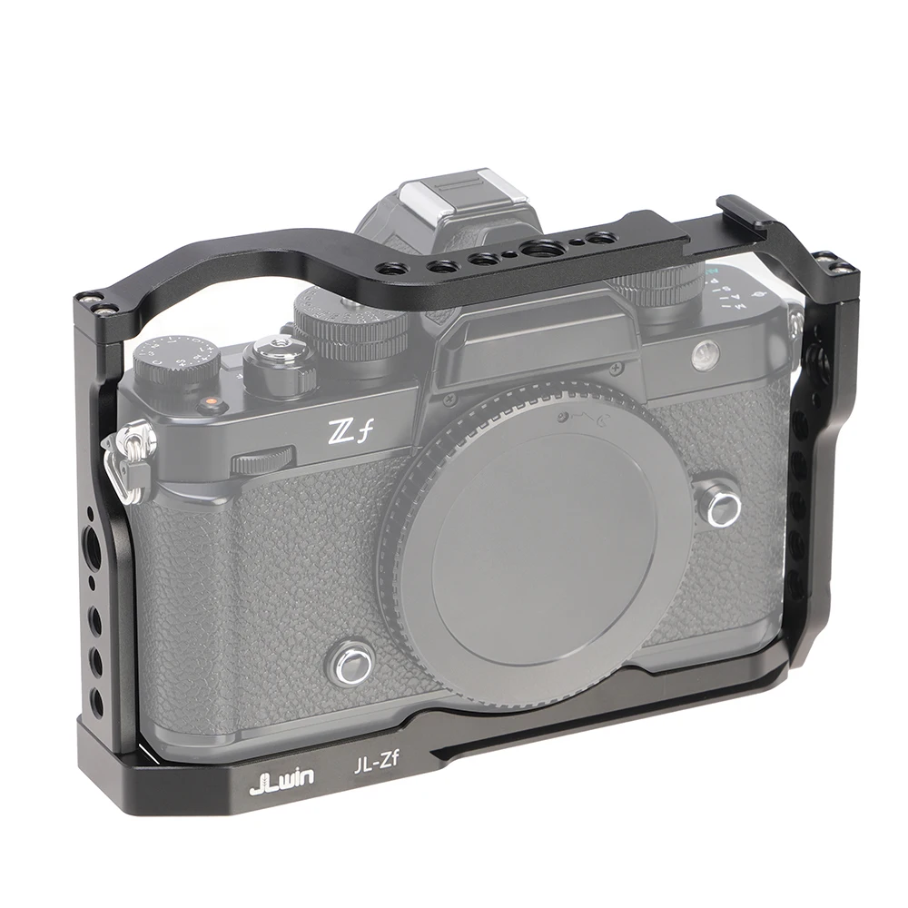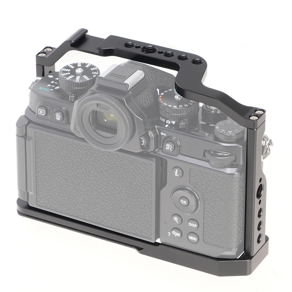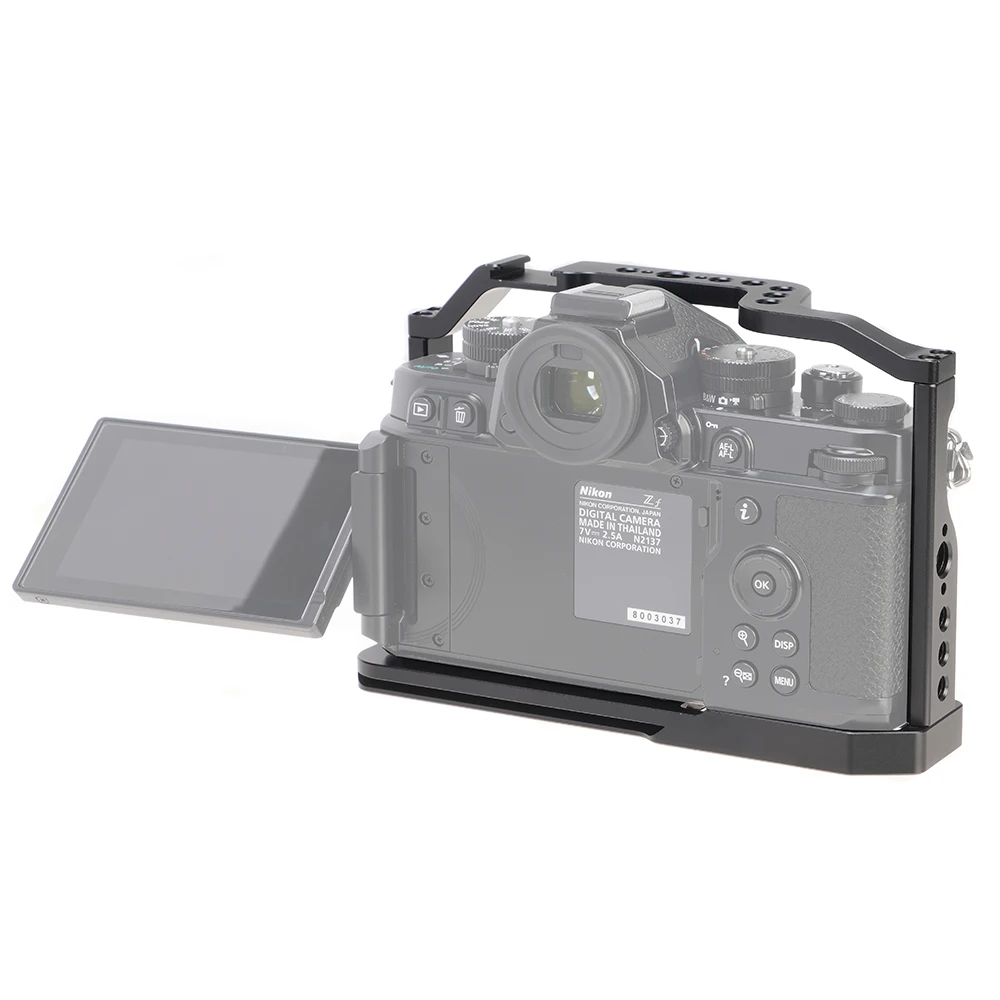 La jaula de aluminio para cámara está diseñada específicamente para Nikon ZF Cámara.Es una jaula completa que es liviana y se adapta perfectamente a la cámara.Está equipado con múltiples orificios roscados de 1/4" -20 y 3/8" -16, orificio de ubicación ARRl y zapata fría para montaje de accesorios.