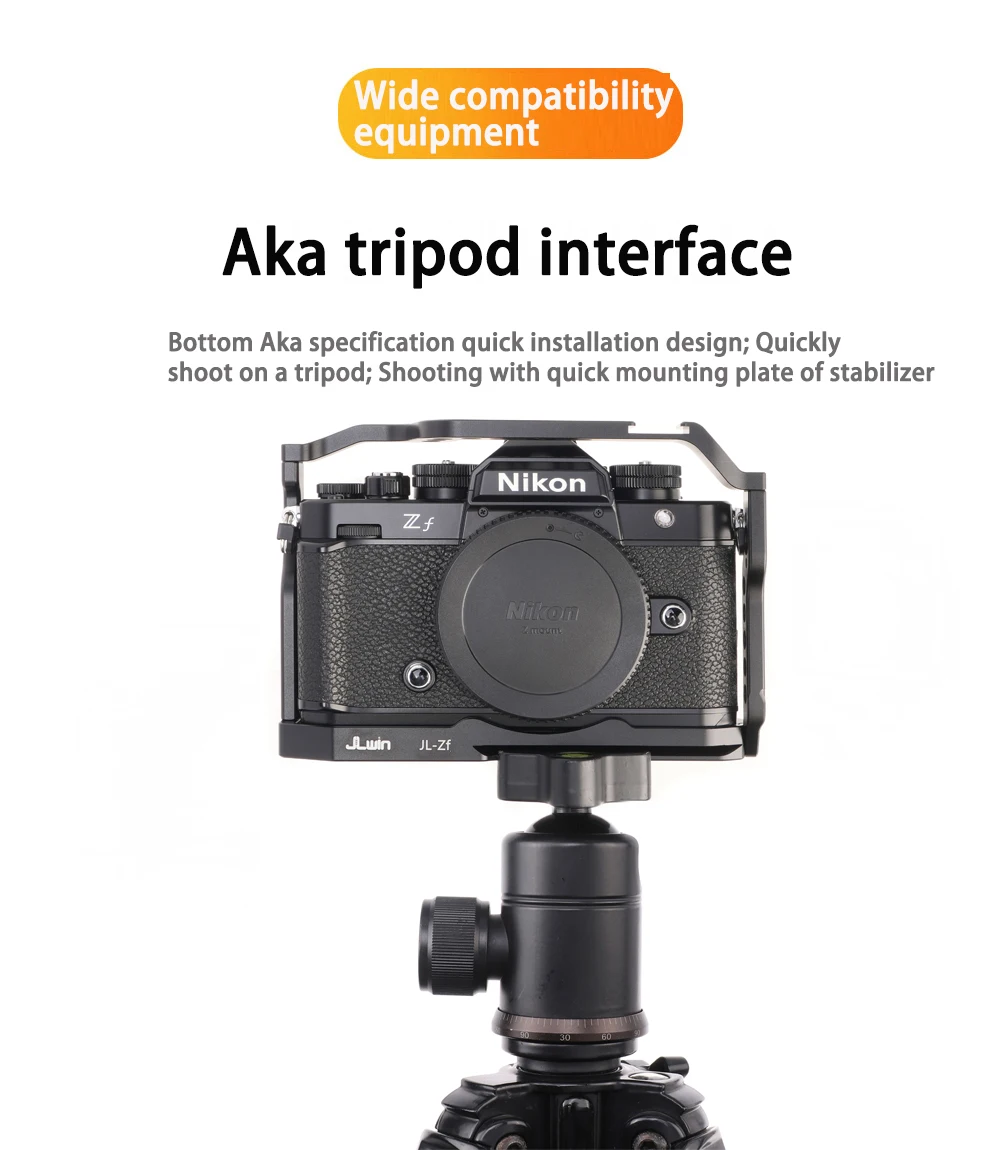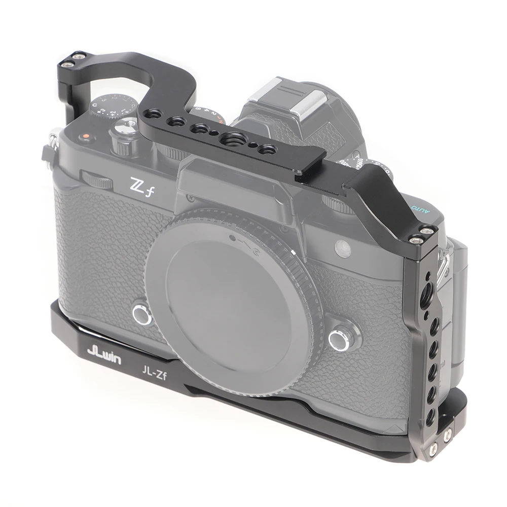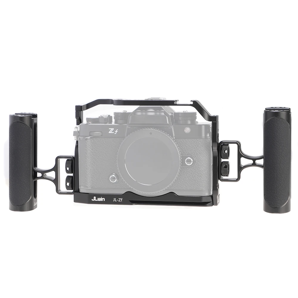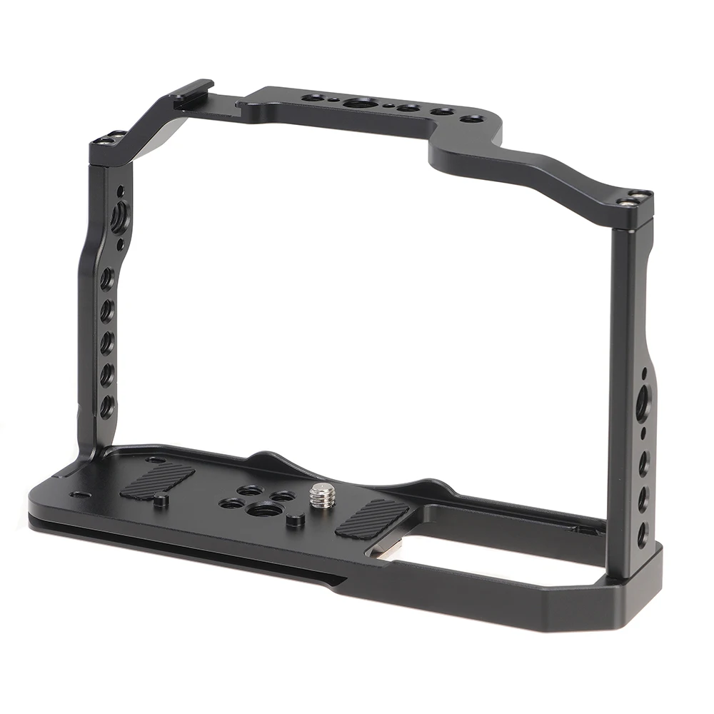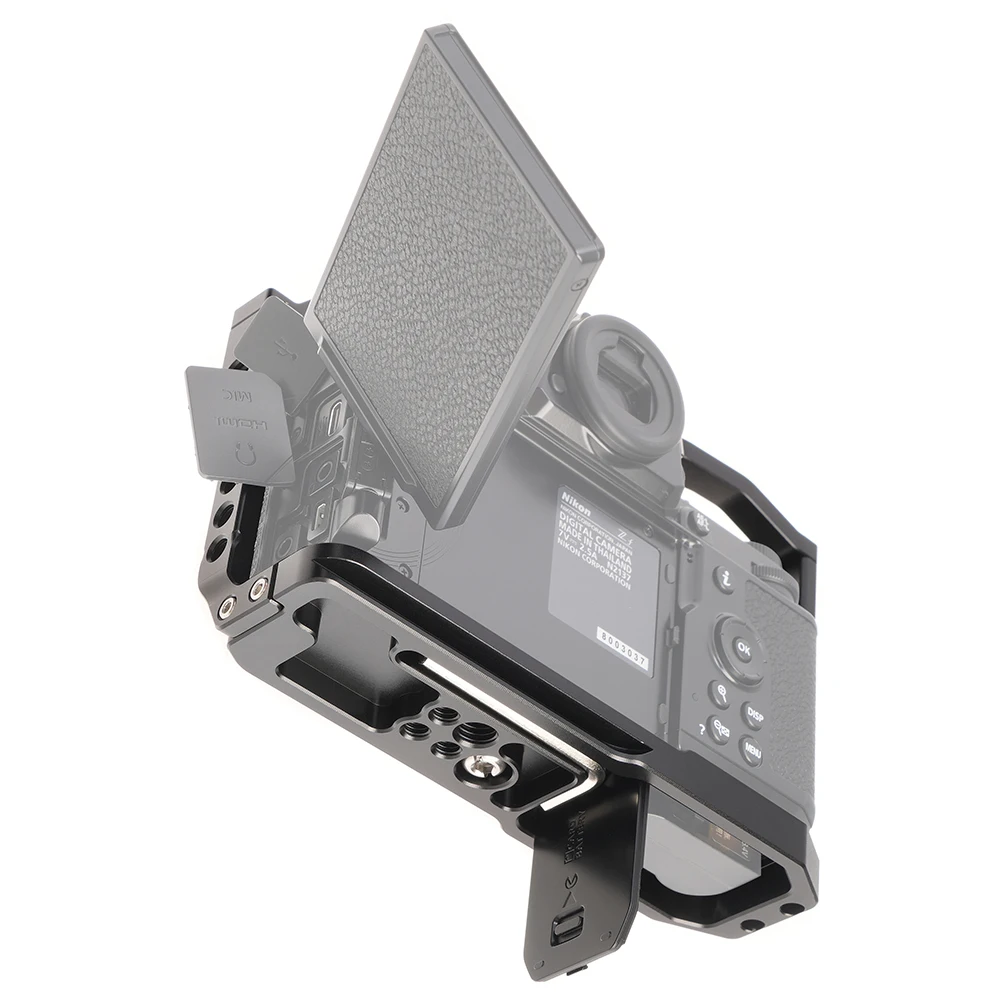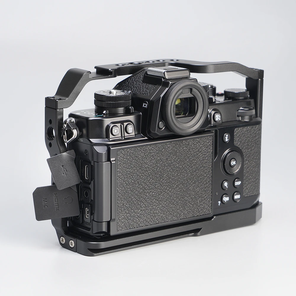 La jaula de aluminio para cámara está diseñada específicamente para Nikon ZF Cámara.Es una jaula completa que es liviana y se adapta perfectamente a la cámara.Está equipado con múltiples orificios roscados de 1/4" -20 y 3/8" -16, orificio de ubicación ARRl y zapata fría para montaje de accesorios.