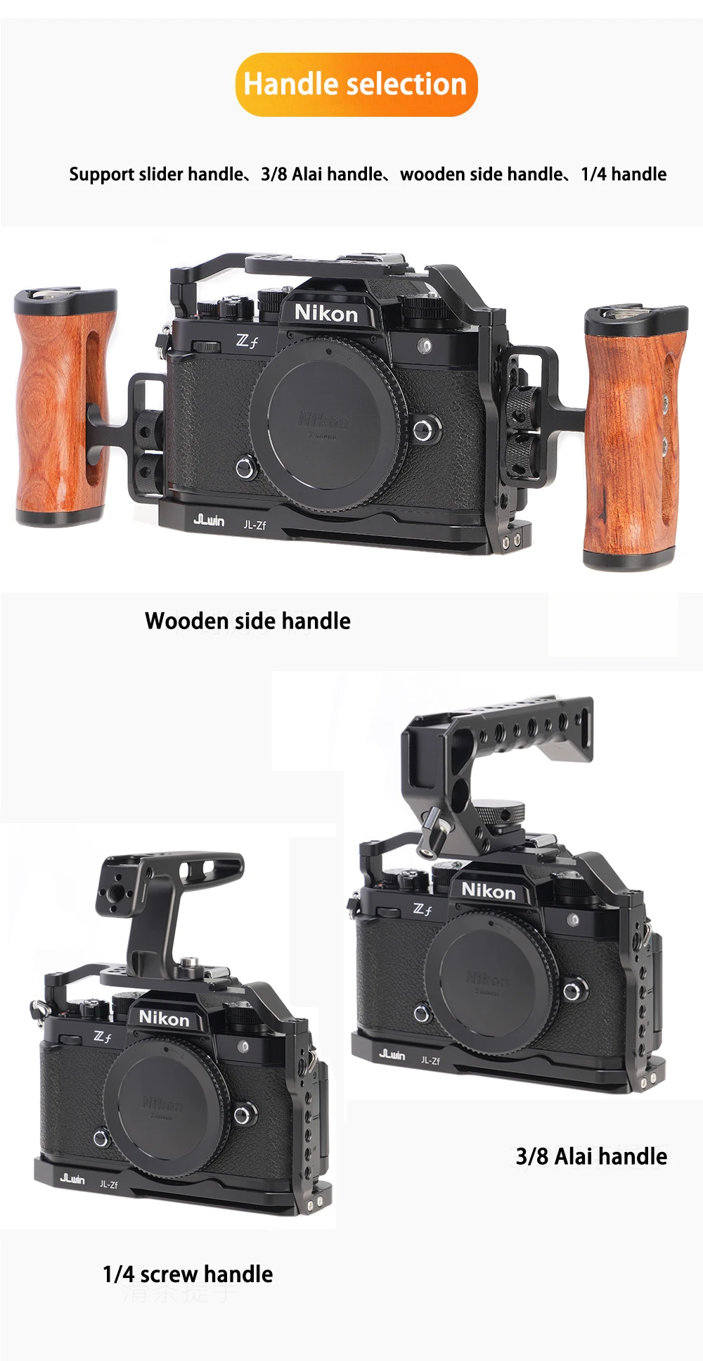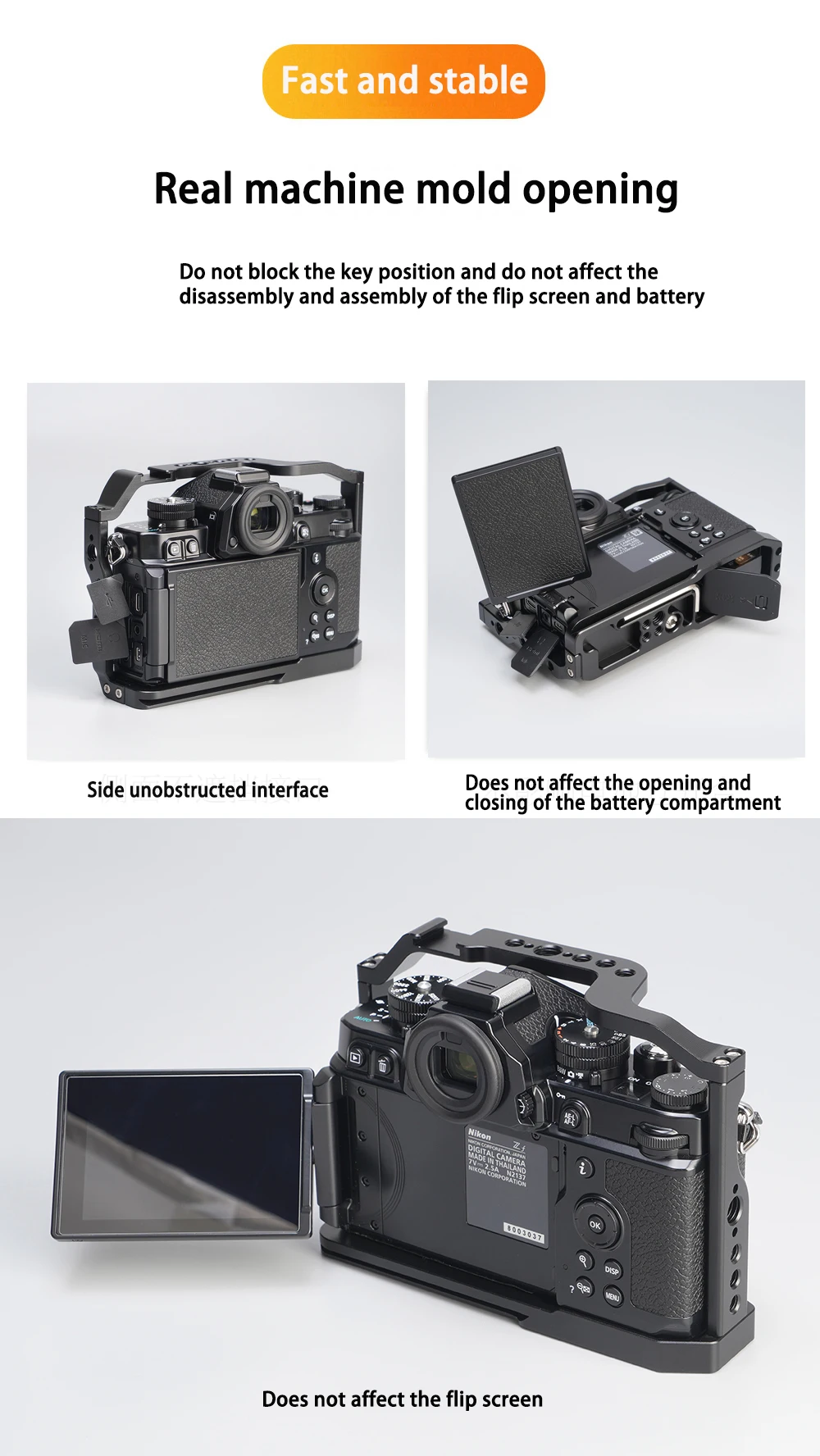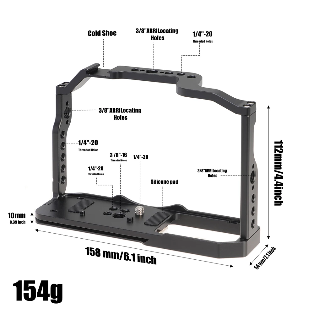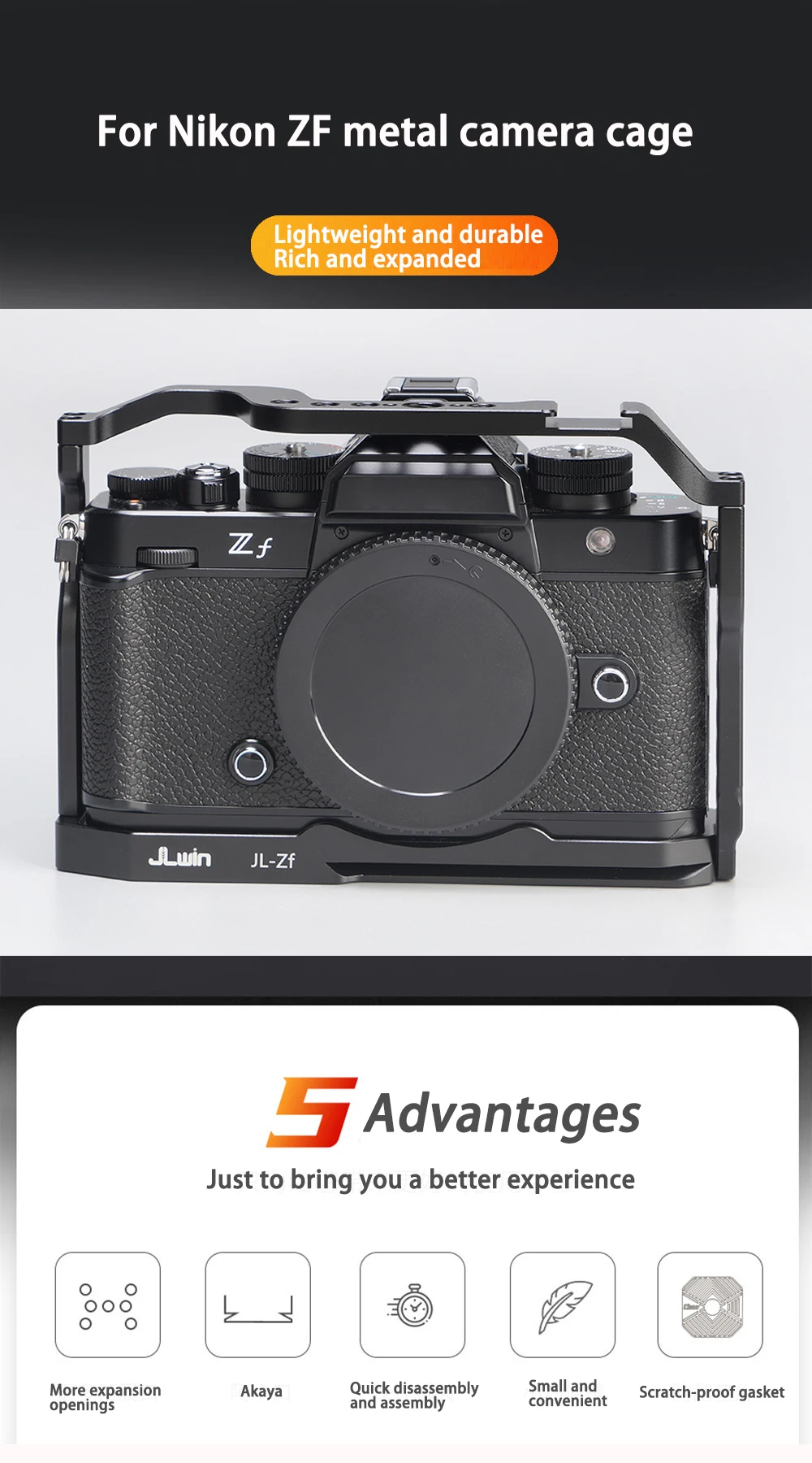 La jaula de aluminio para cámara está diseñada específicamente para Nikon ZF Cámara.Es una jaula completa que es liviana y se adapta perfectamente a la cámara.Está equipado con múltiples orificios roscados de 1/4" -20 y 3/8" -16, orificio de ubicación ARRl y zapata fría para montaje de accesorios.