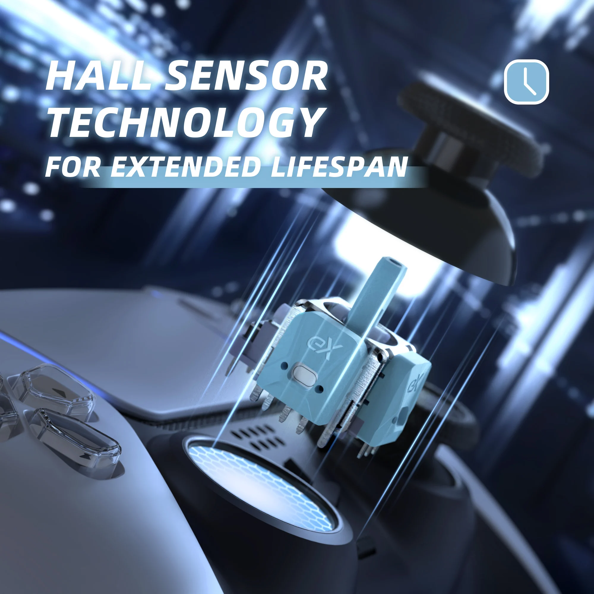 El joystick eXhall Hall Effect con tecnología de sensor Hall ofrece precisión, durabilidad, resistencia al desgaste y tiempos de respuesta más rápidos excepcionales, brindando un control fluido y confiable para FPS y jugadores de juegos de lucha.