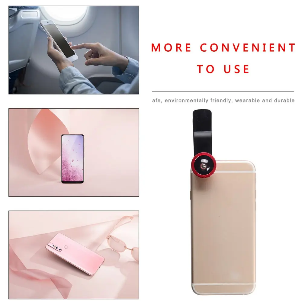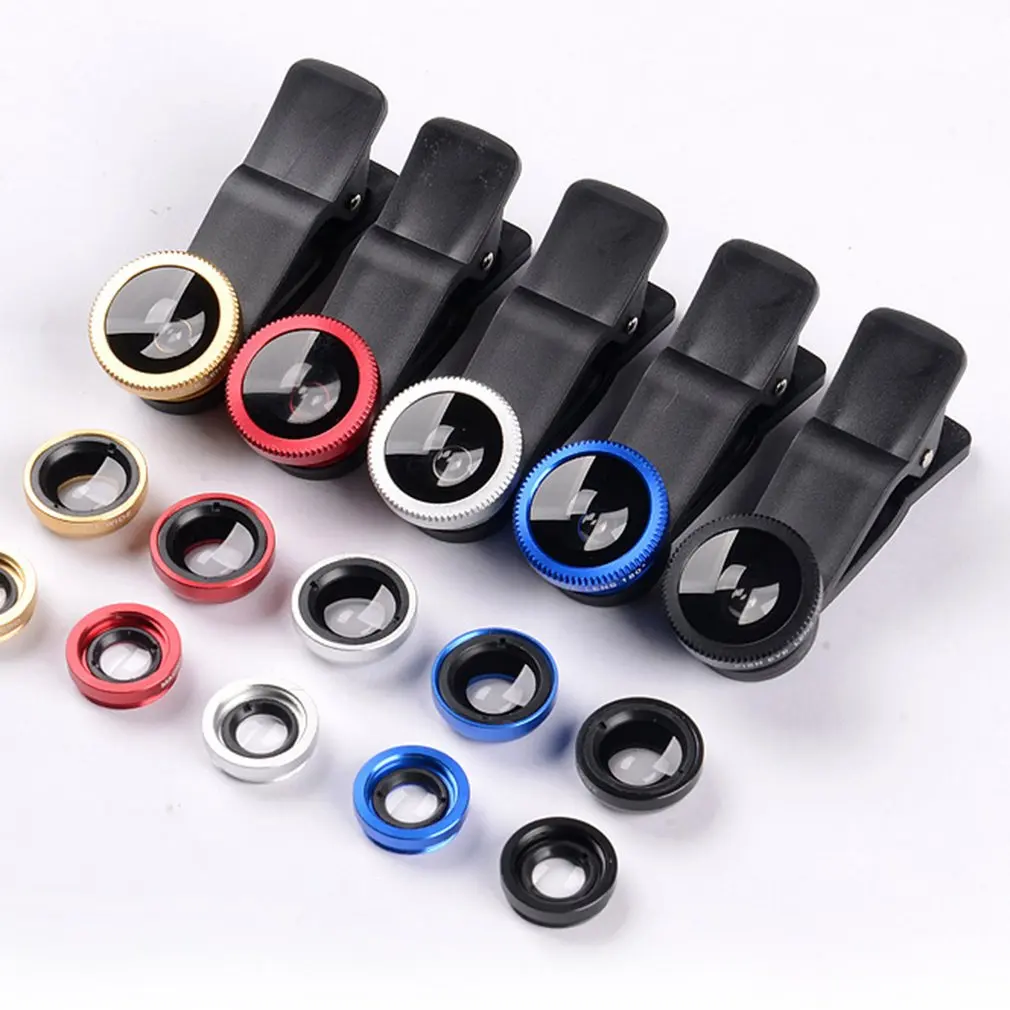 Comprar Kit de lente de ojo de pez Macro gran angular 3 en 1, kit de cámara para teléfono móvil, lentes de ojo de pez para todos los teléfonos móviles con Clip 0.67x Palma redonda