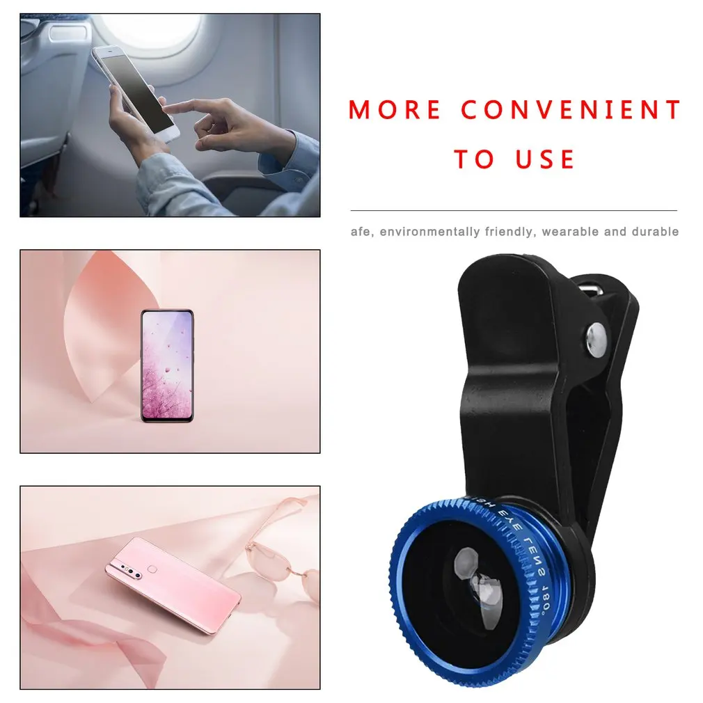 Comprar Kit de lente de ojo de pez Macro gran angular 3 en 1, kit de cámara para teléfono móvil, lentes de ojo de pez para todos los teléfonos móviles con Clip 0.67x Palma redonda