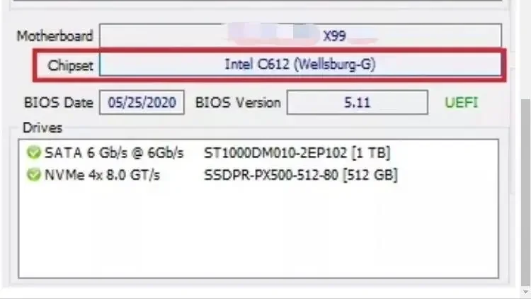 El chipset de la placa base es de la serie C610 (como C612, que pertenece al chipset del servidor. Es equivalente al chipset X99)