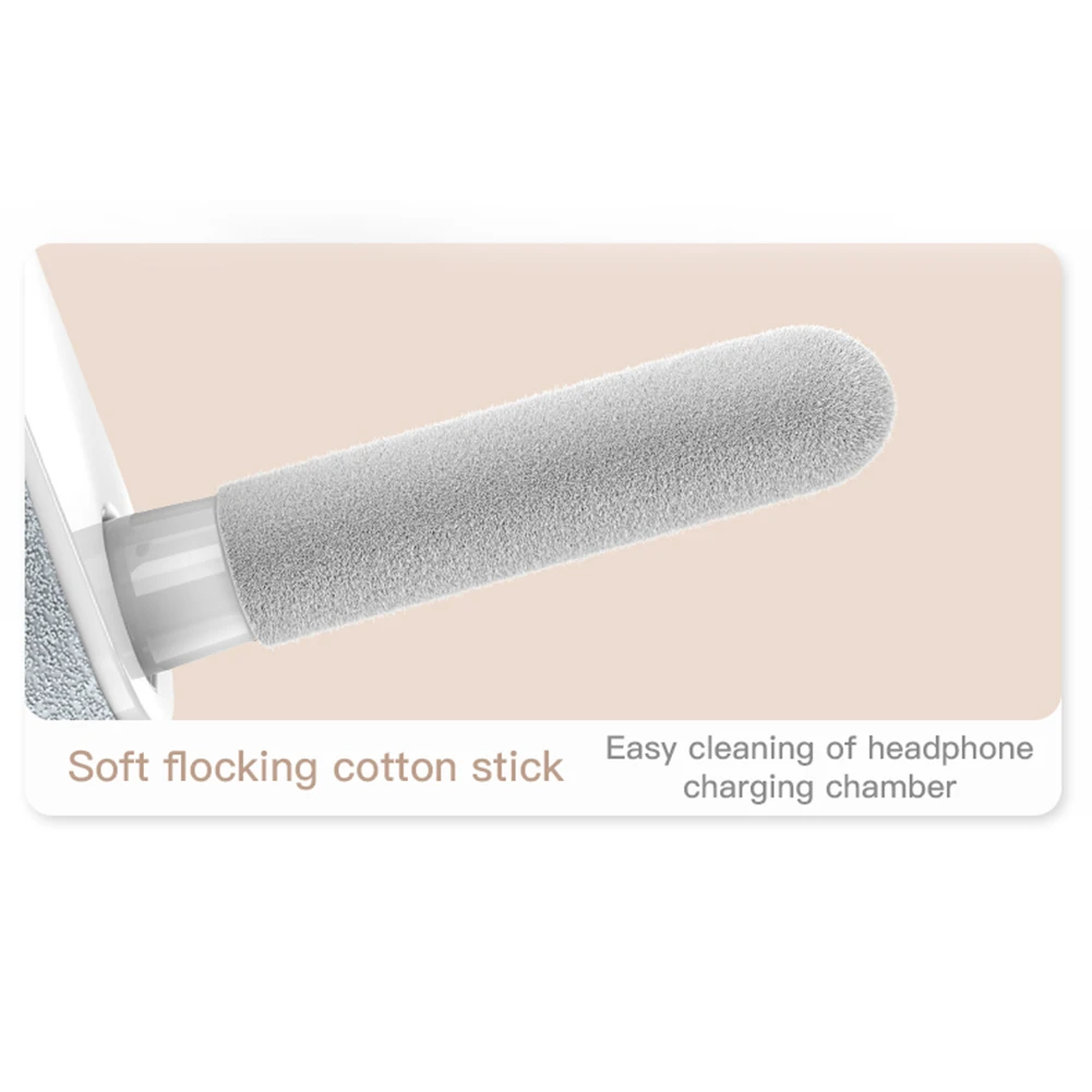 Barra de esponja flocada: La esponja flocada delicada y suave limpia el compartimento de carga de la caja de auriculares, la descontaminación no deja ningún residuo